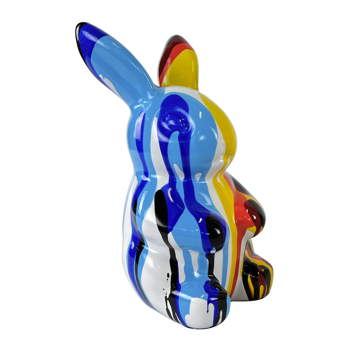 Oggetti di design in poliresina a forma di conigli con fantasia multicolor. Dimensioni: cm H.25xL.12
