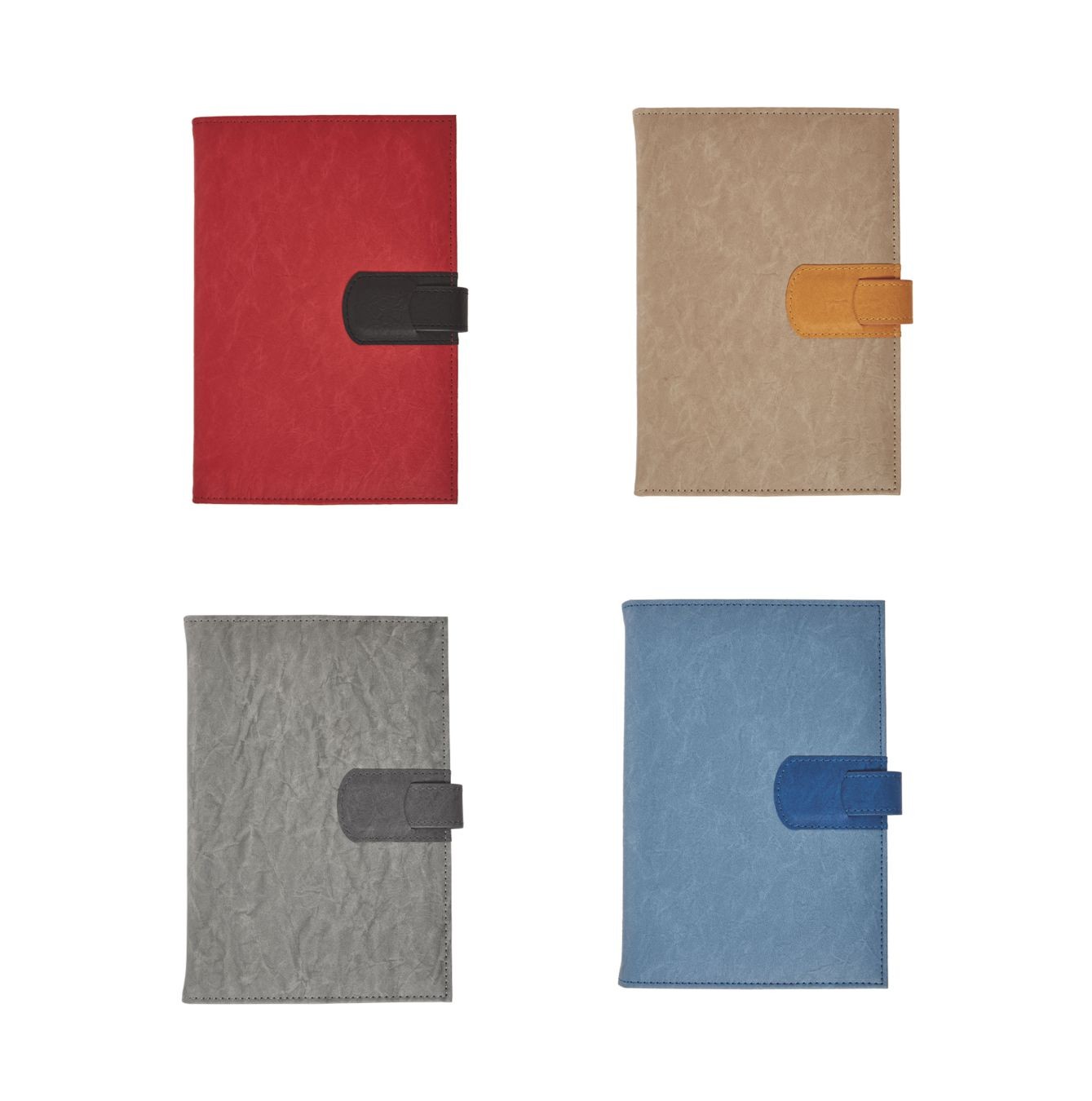 Copertina per agenda in materiale termovirante. Vari scomparti interni porta card, vano porta penna. Chiusura con passante. Confezione in astuccio. Dimensioni cm.17x22 Imballo: 30xcolore