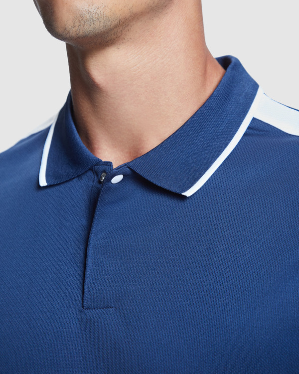 Polo tecnica da uomo a maniche corte in poliestere riciclato antibatterico. Colletto e maniche in costina 1x1. Copri cuciture rinforzate sul colletto. Abbottonatura con due bottoni a pressione. Spalle e dettagli a contrasto. Spacchi laterali sull'orlo.