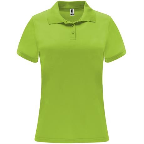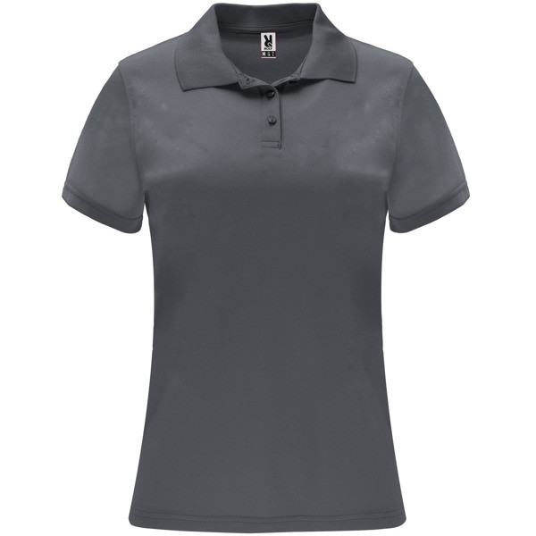 Polo tecnica con manica corta da donna. Collo tricot con chiusura a tre bottoni. Taglio sfiancato.