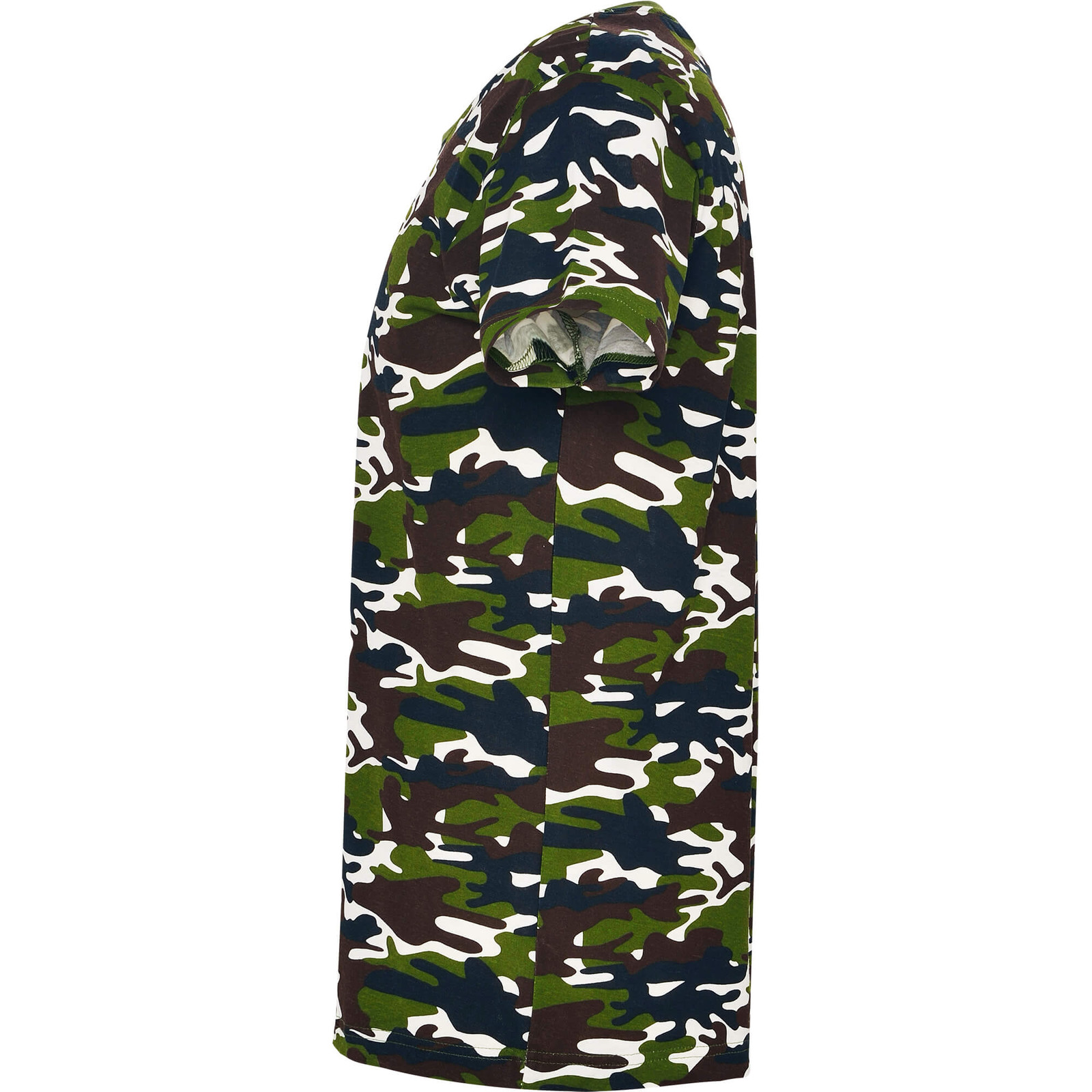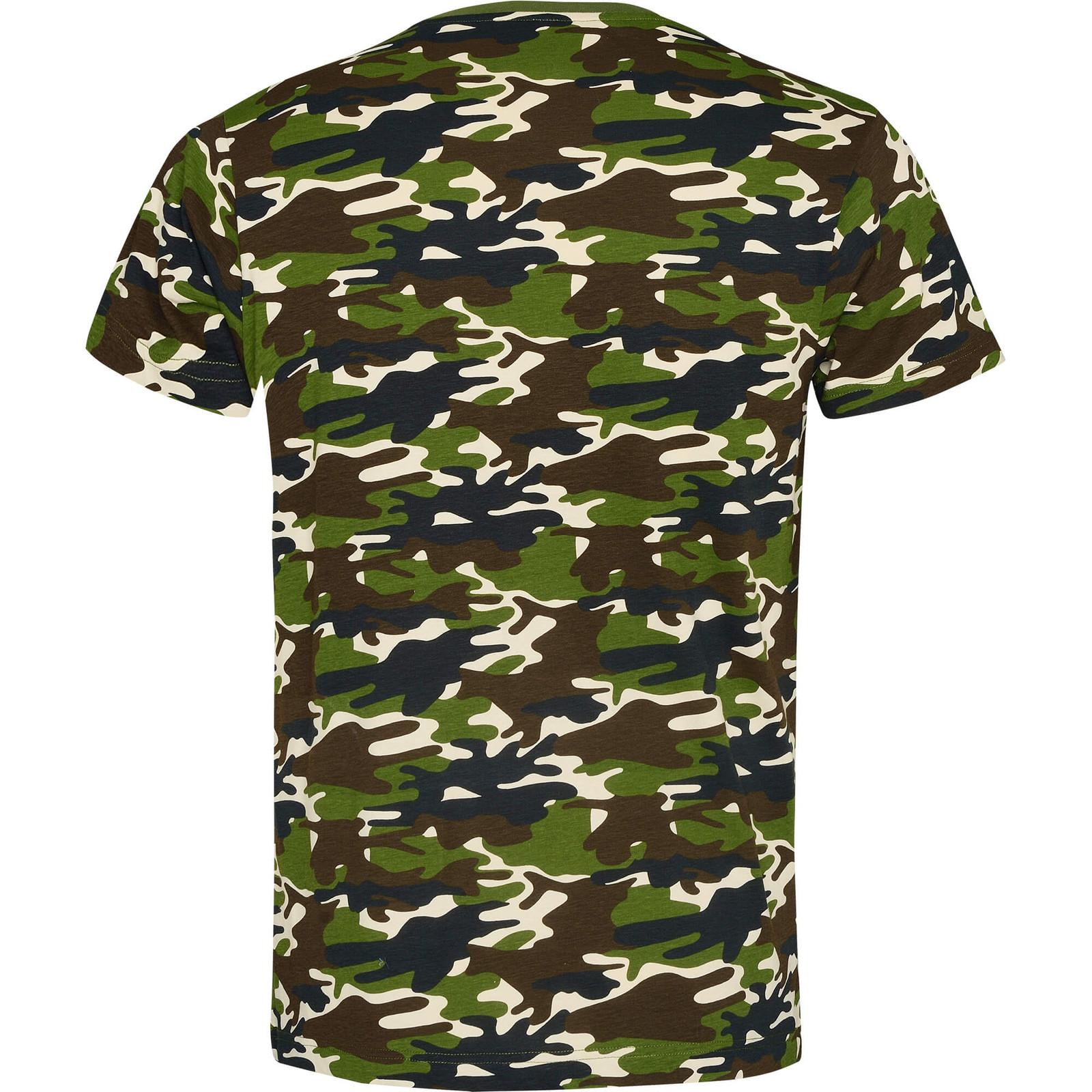 T-shirt manica corta, camouflaje e girocollo. Cuciture ribattute e rinforzate con 4 strati all´interno del girocollo e spalle. Cuciture laterali.