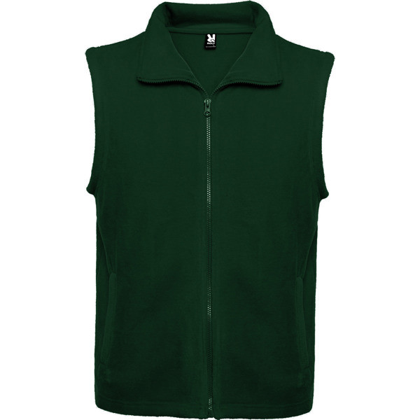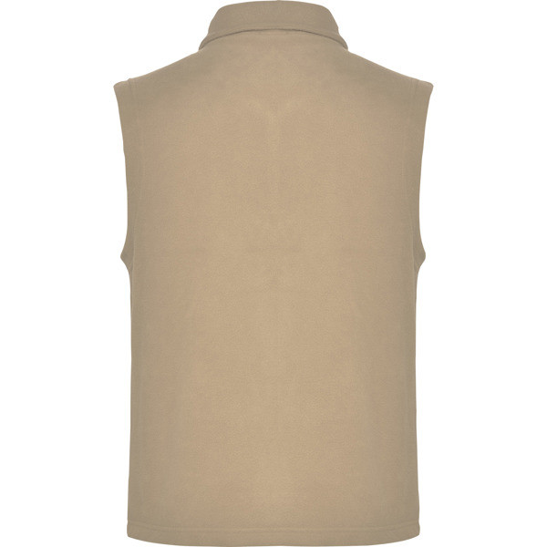 Gilet in pile concollo alto e cerniera. Dettaglio tasche laterali con cerniera in tinta.