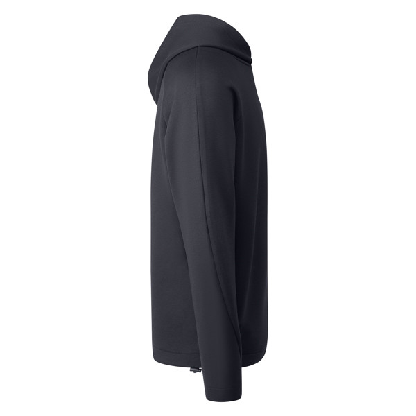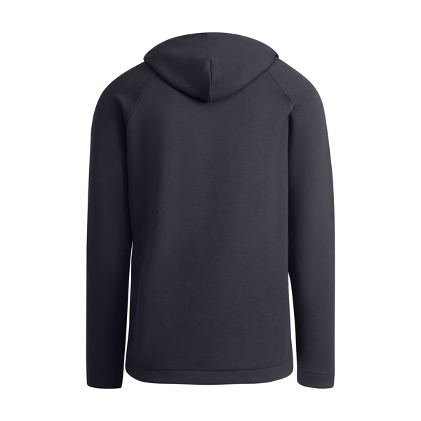 Felpa con cappuccio in tessuto leggero. Cappuccio con clip monopezzo. Cuciture laterali e cuciture delle maniche in avanti. Tasche integrate nelle cuciture laterali. Regolazione in PVC con cucitura elastica in vita. Logo Roly in tono sulla manica sinistra.