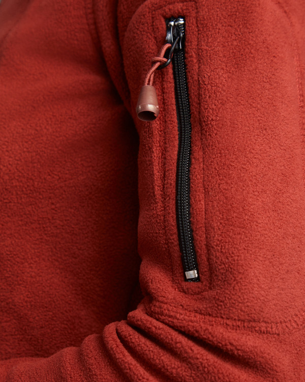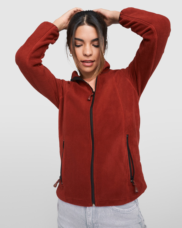 Giacca sportiva in pile per il tempo libero, collo alto e maniche lunghe con ribattitura in contrasto. Tasca con zip sulla manica sinistra e cerniera centrale entrambi in contrasto. Cuciture laterali e anteriori ad altezza petto. Rinforzo sul gomito dello stesso tessuto.