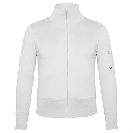 Giacca Giubbino casual con collo alto cerniera centrale del colore del tessuto. Colletto, polsini e punto vita con costina alta. Tasca sulla parte superiore della manica con zip e uscita per auricolari cellulare. Cuciture nascoste di rinforzo all´interno collo. Cuciture laterali cimosa e polsino con foro per il pollice.