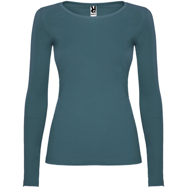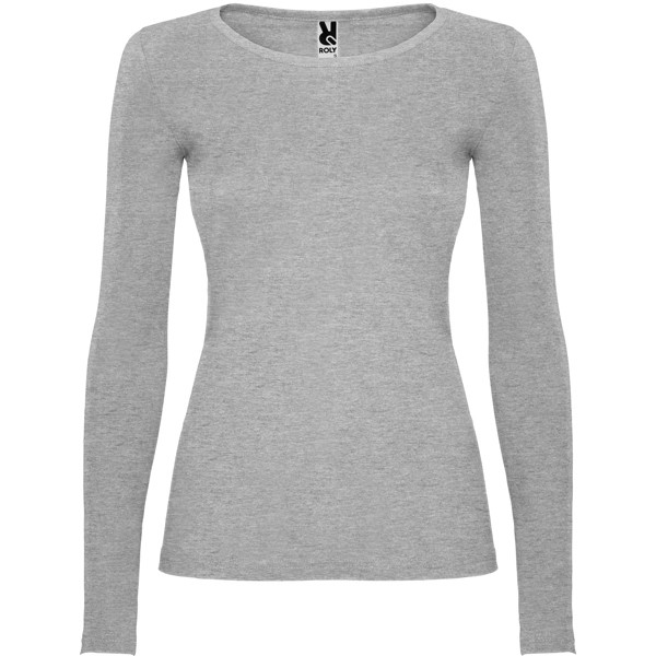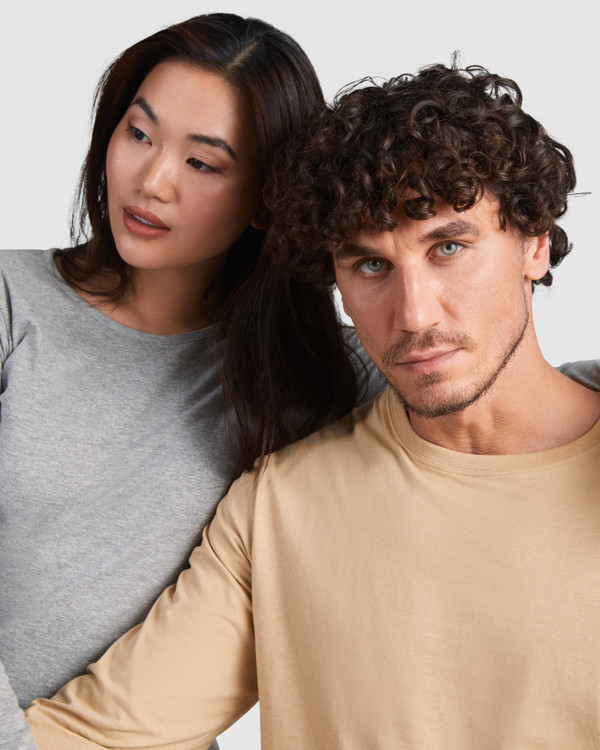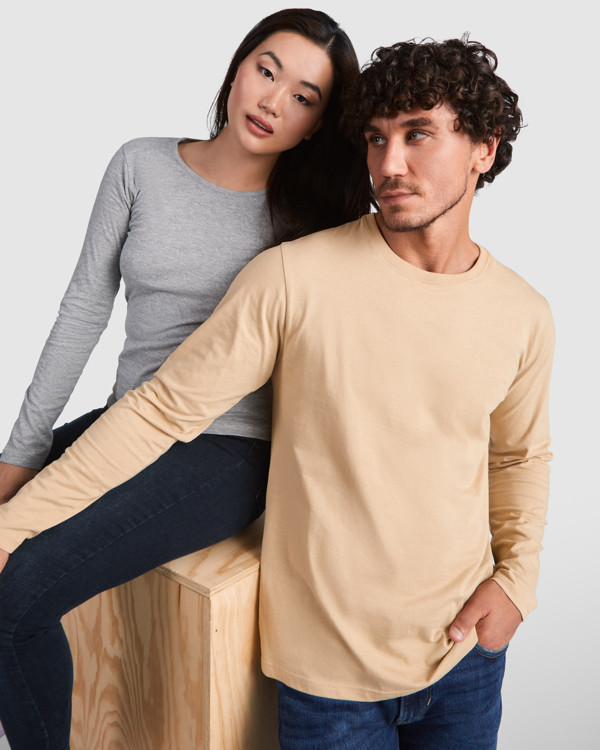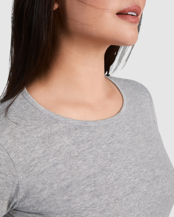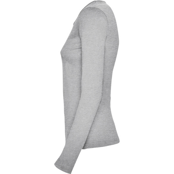 Maglietta semi-aderente, manica lunga e colletto sottile. Senza polsini. Cuciture laterali.