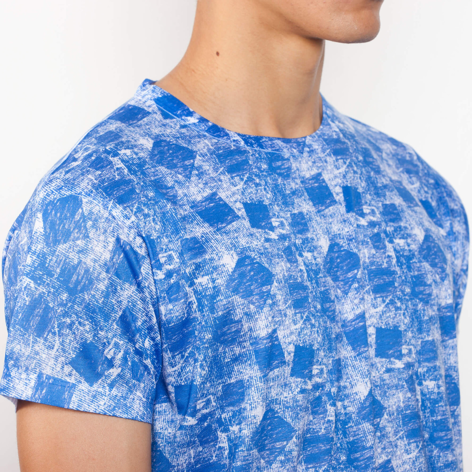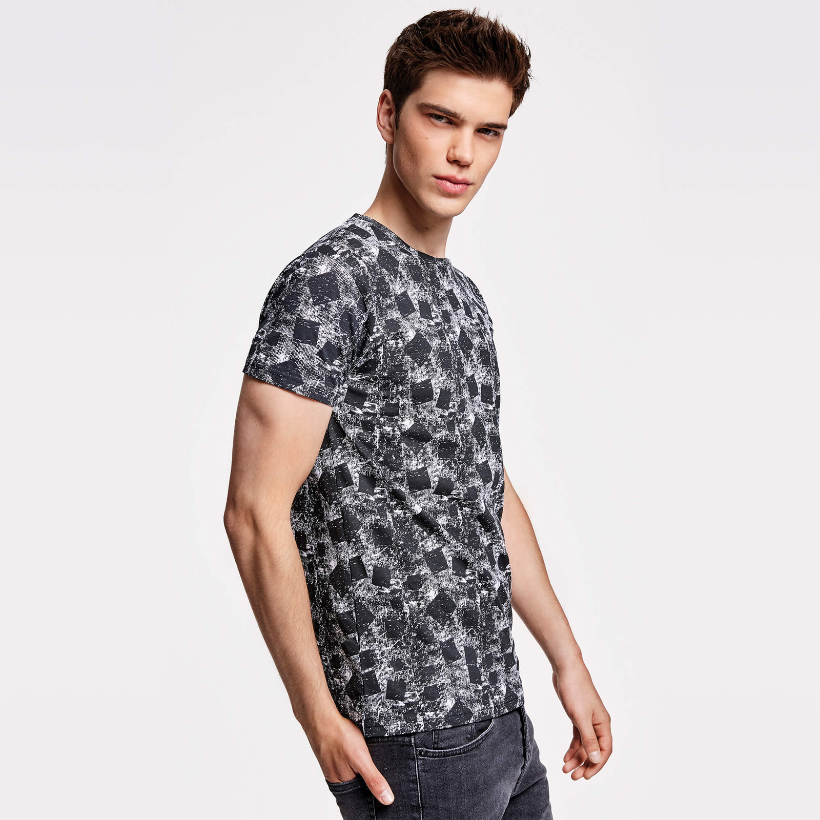 T-shirt stampata manica cora. Girocollo con copricuciture di rinforzo. Cuciture laterali.