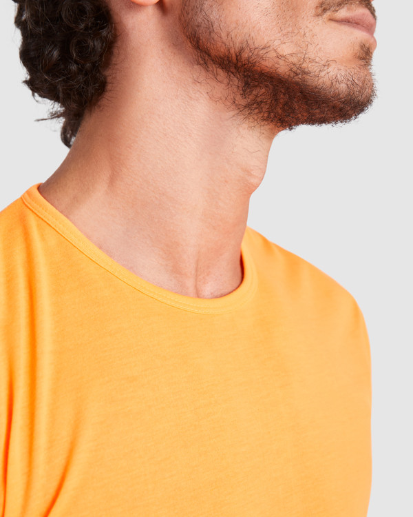 T shirt manica corta in colori FLUO, girocollo e rinforzo in costina all´interno in colori fluo. Tessuto in poliestere tatto cotone.