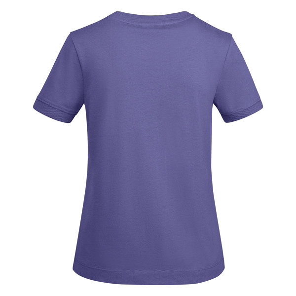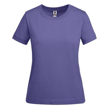 T-shirt spessa a maniche corte da donna in cotone. Collo rotondo e bordi delle maniche a coste larghe 2x1. Copri cuciture rinforzate sul colletto. Cuciture laterali. Logo Roly sull'orlo laterale sinistro. Ampie cuciture sull'orlo.