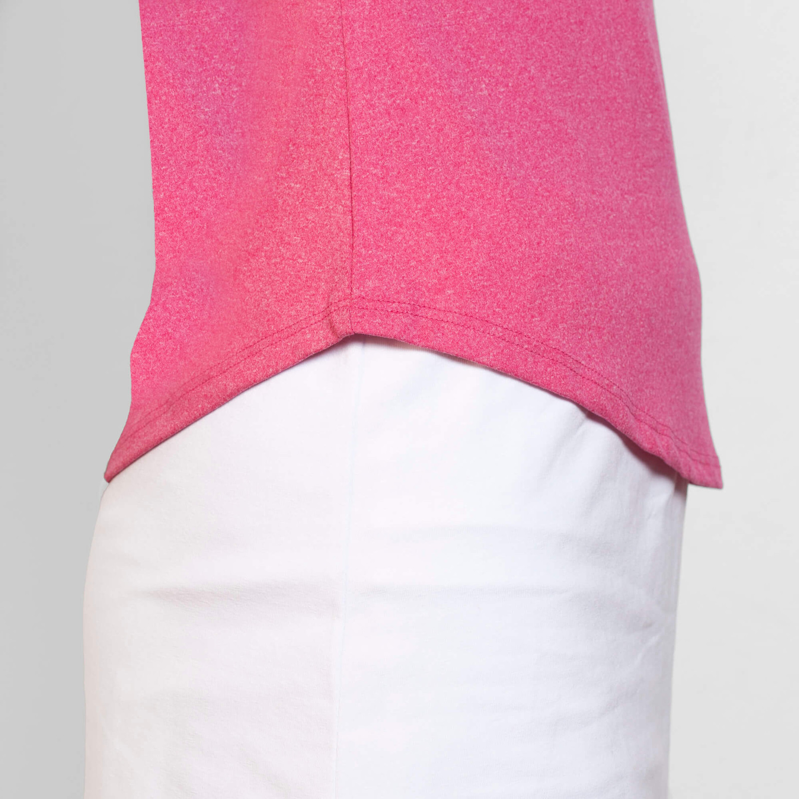 T-shirt tecnica multisport da donna maniche corte stile raglan. Collo a V. Tessuto poliestere tatto cotone. Taglio aderente.