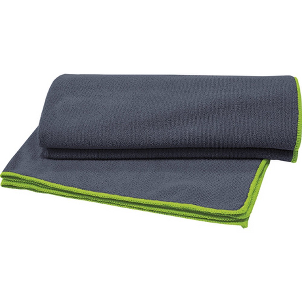 Asciugamano e telo mare, ricucito in poliestere con tre fili tono su tono, eccetto nel colore piombo scuro (rif. 46) ed anche nel ricucito giallo fluo (rif. 221). Ornamento elastico per piegarlo.