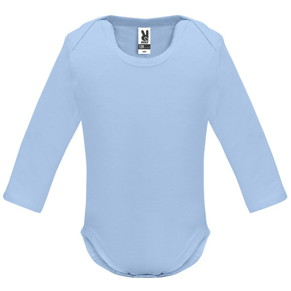 Body neonato manica lunga single jersey. Girocollo e parte inferiore rifiniti in costina 1x1. Chiusura con bottoni a pressione sull´inguine. Spalla con apertura incrociata.