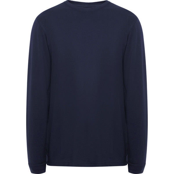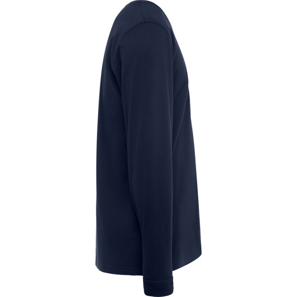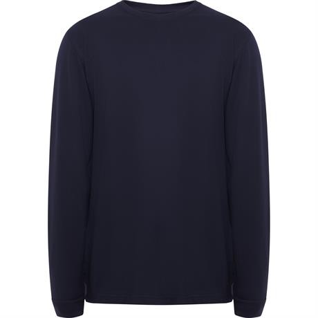 Maglia a maniche lunghe in tessuto ignifugo. Girocollo con cuciture di copertura. Collo e polsini a costine 1x1. Cuciture laterali.