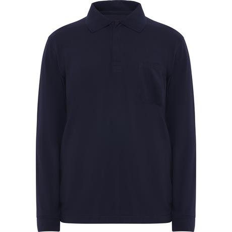 Polo a maniche lunghe in tessuto ignifugo. Collo e polsini a costine 1x1. 3 bottoni nascosti. Cuciture rinforzate e coperte nel collo. Spacchetti laterali al fondo.