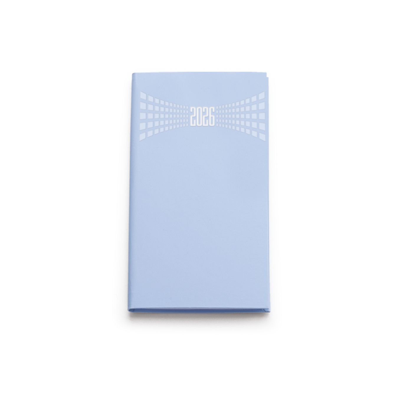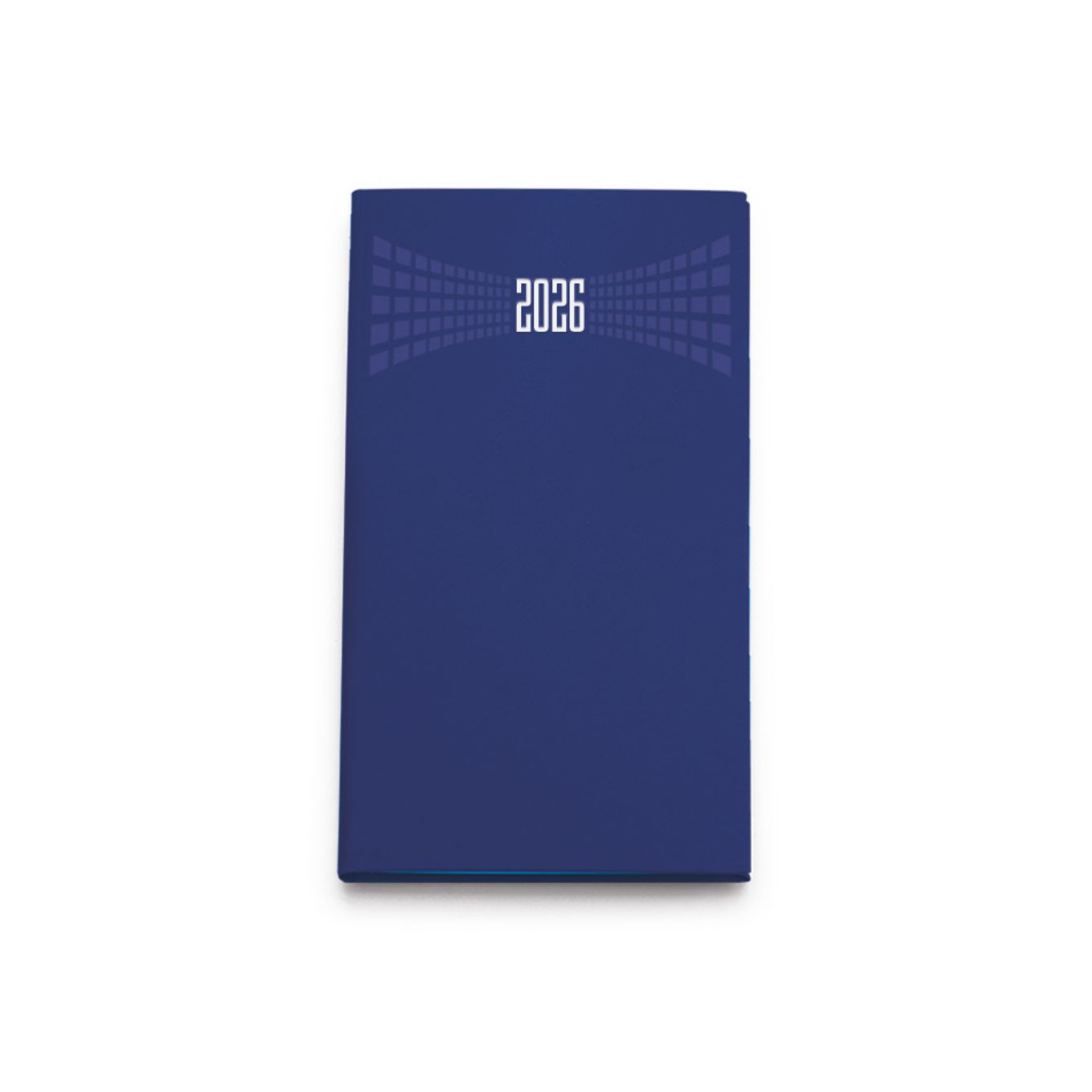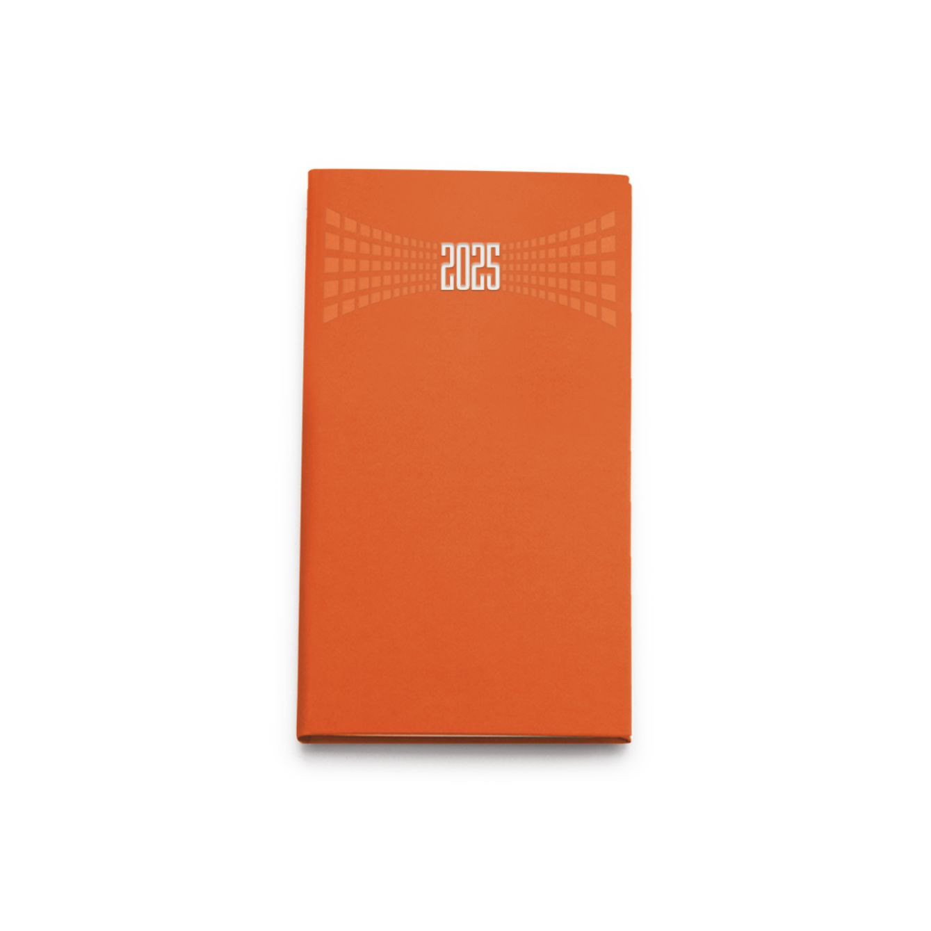 Agendina settimanale in matra. Interno stampa 2 colori. Multilingue, rubrica telefonica. Colori pastello: arancio, bianco, cielo, verde, verde acqua, royal. . Dimensioni cm 8x14. Pagine 128.