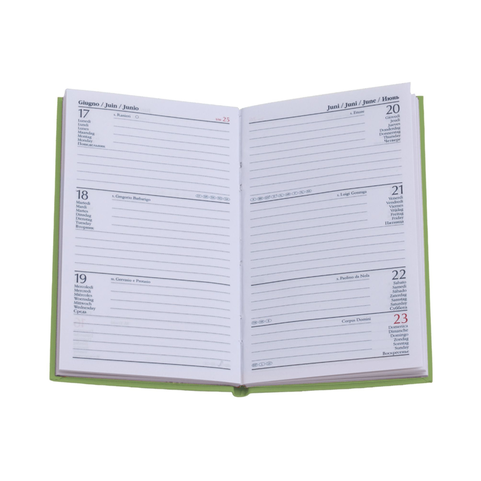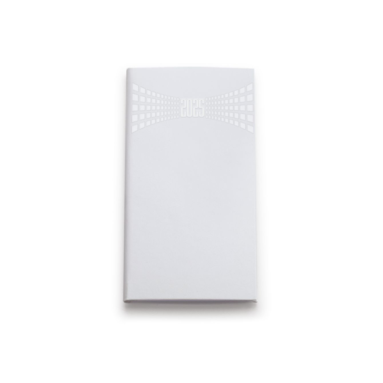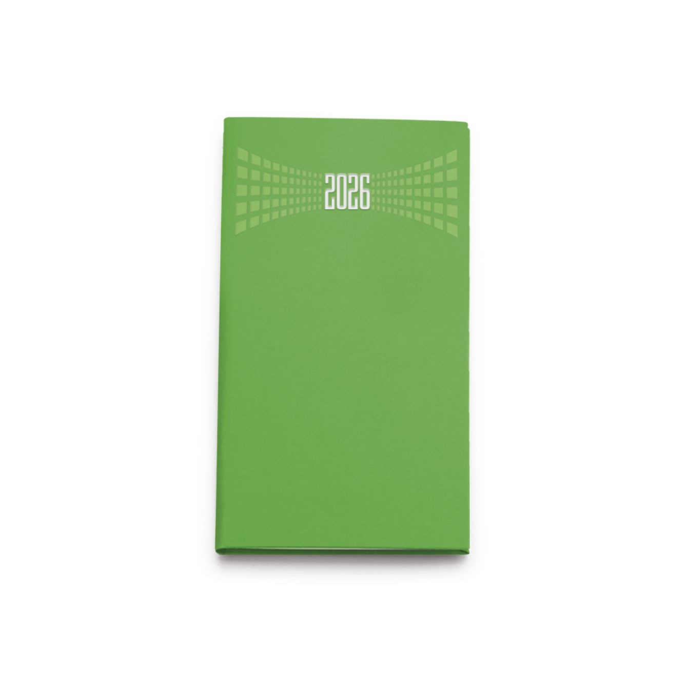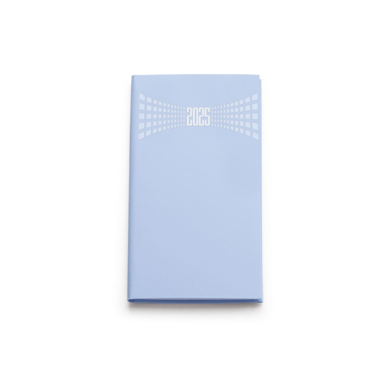 Agendina settimanale in matra. Interno stampa 2 colori. Multilingue, rubrica telefonica. Colori pastello: arancio, bianco, cielo, verde, verde acqua, royal. . Dimensioni cm 8x14. Pagine 128.