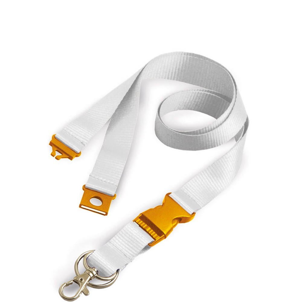 Laccio da collo in poliestere con gancio in metallo. - Aggancio di sicurezza colorato. - Colori: giallo, rosso,verde,arancio,bianco. - Dimensioni cm 53x2 - Imballo: 500xcolore