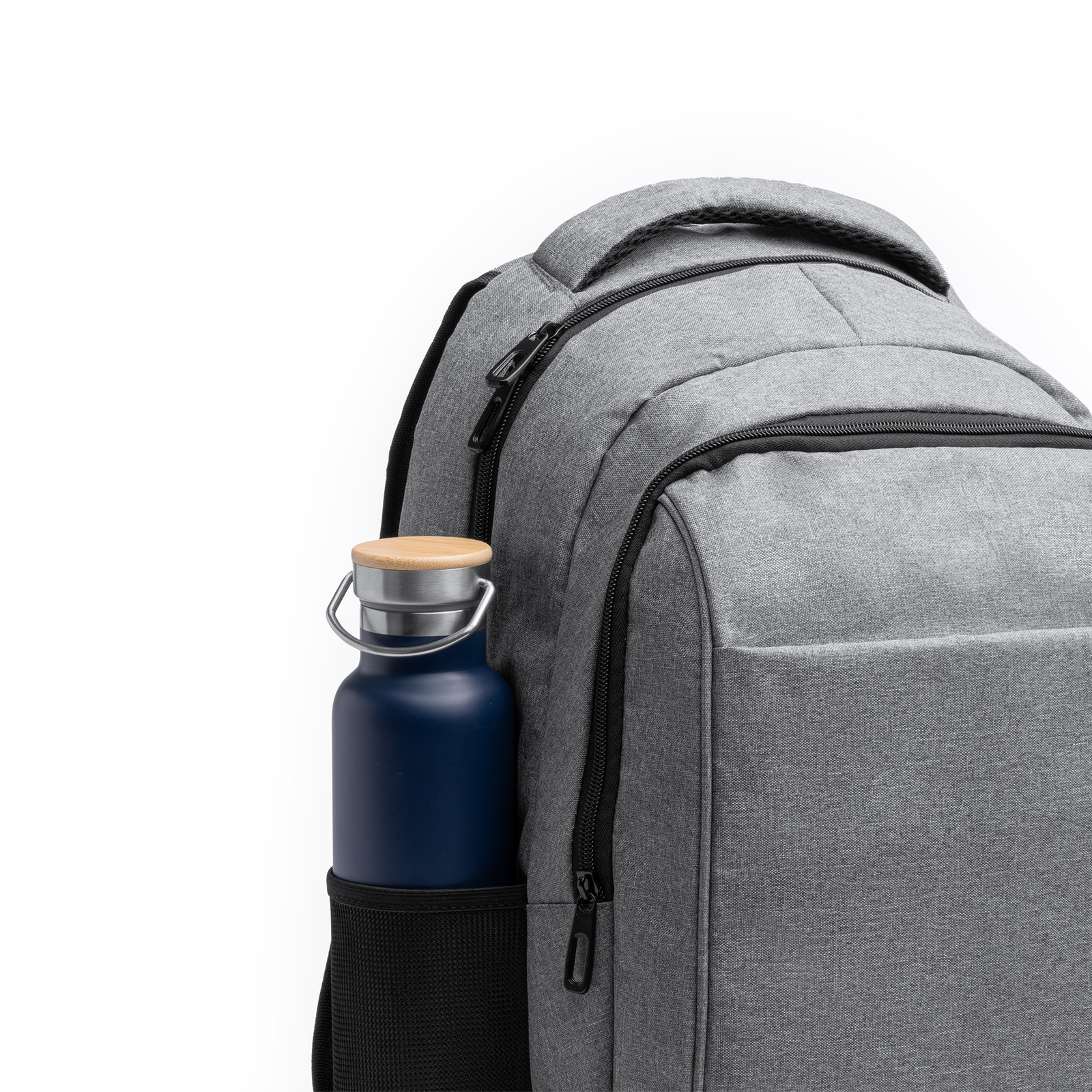 Zaino in RPET dotato di scomparto per PC 13 , tasche aggiuntive e cinghie da trolley. Dimensioni: cm 31x45x19
