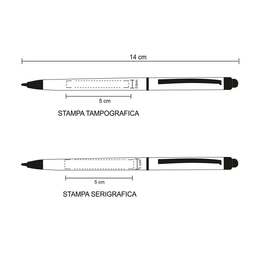 Touch pen slim, a scatto rotante in plastica con clip in metallo. Refill nero. Colori: vedi catalogo/sito. Imballo: 1000xcolore
