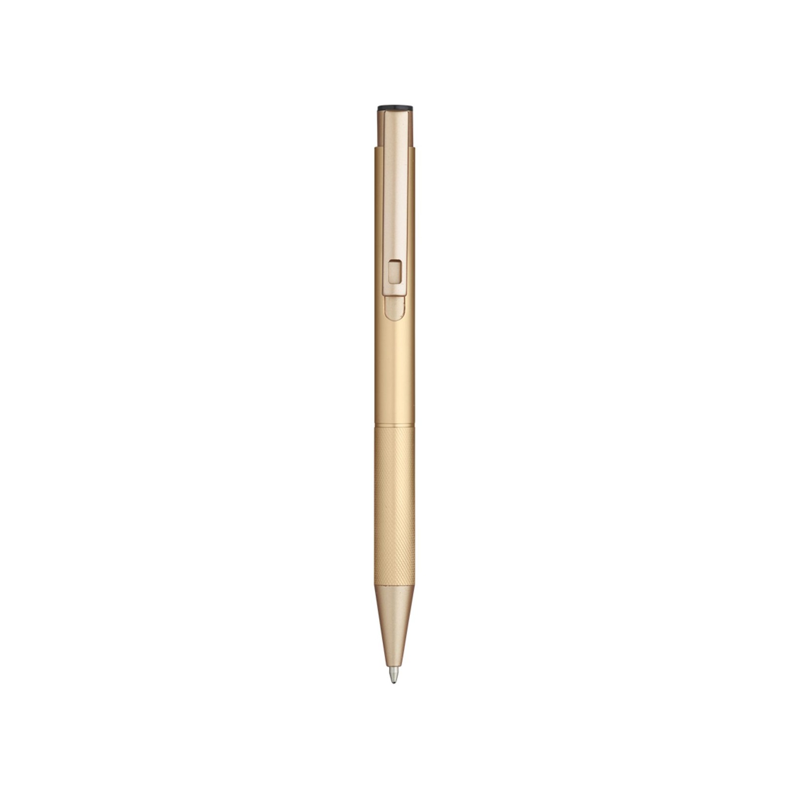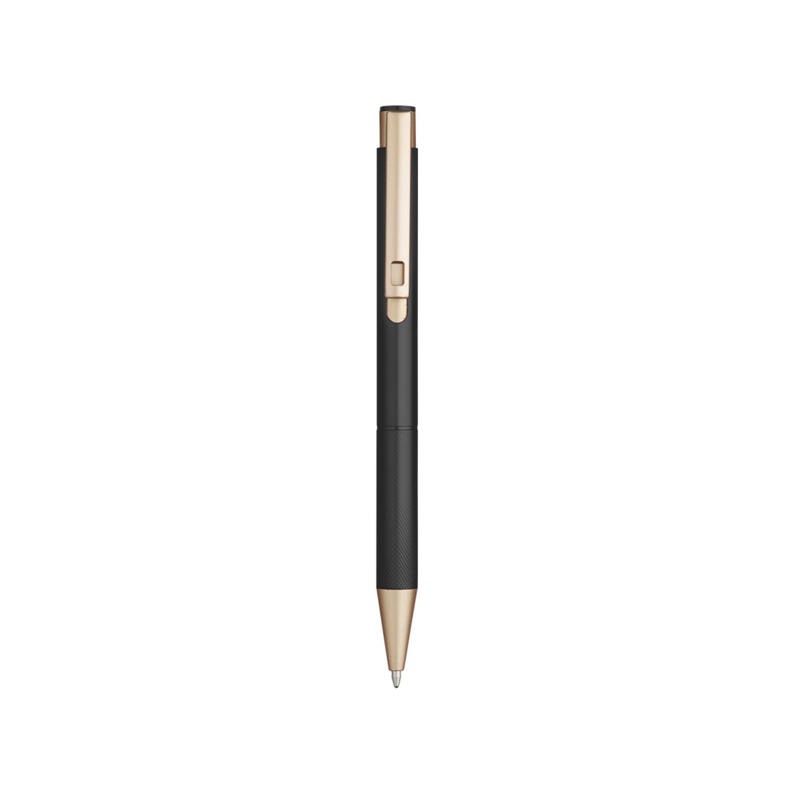 Penna sfera in alluminio. Refill nero. Scritta incisione colore grigio chiaro. Dimensioni: cm 13,5. Imballo: 1000pz.