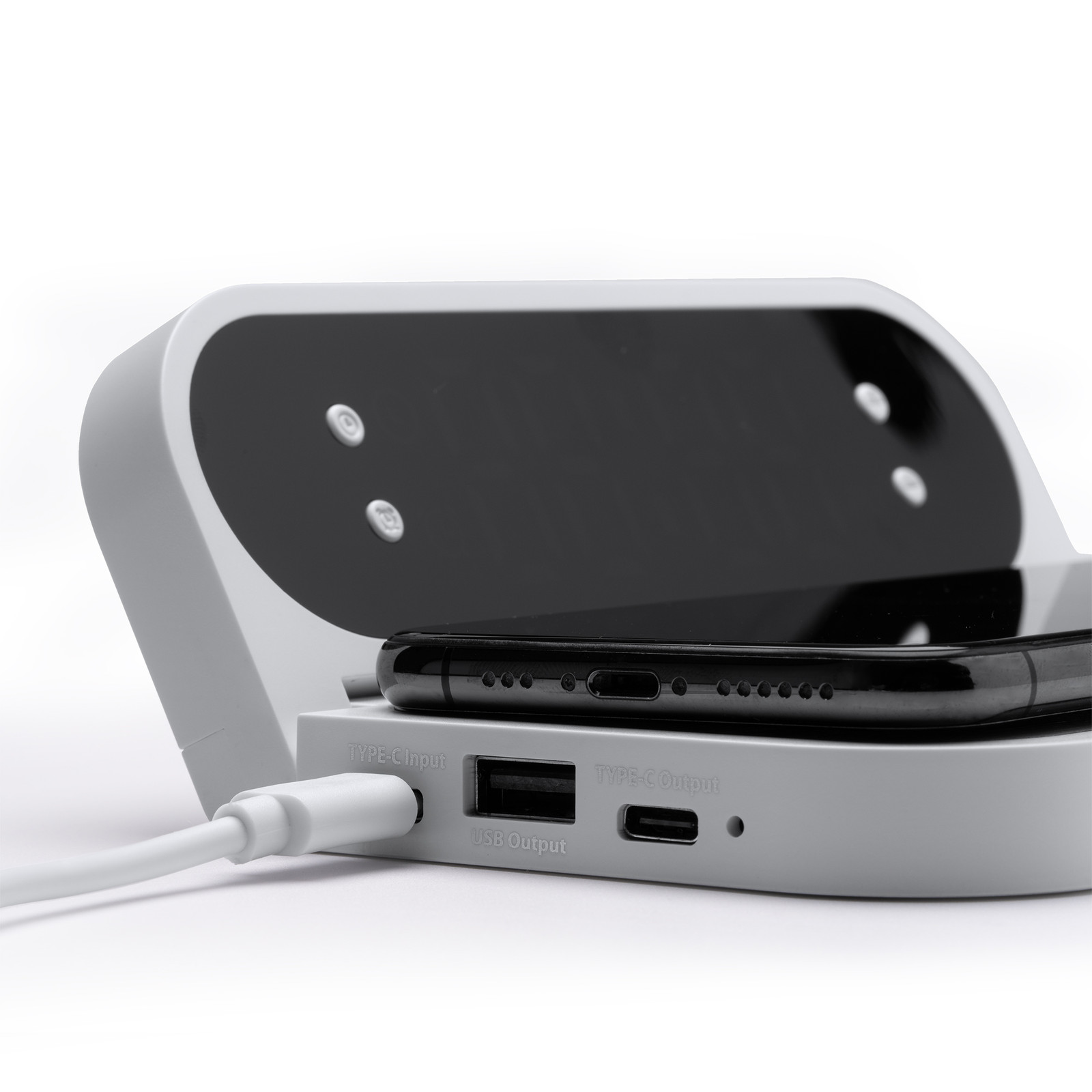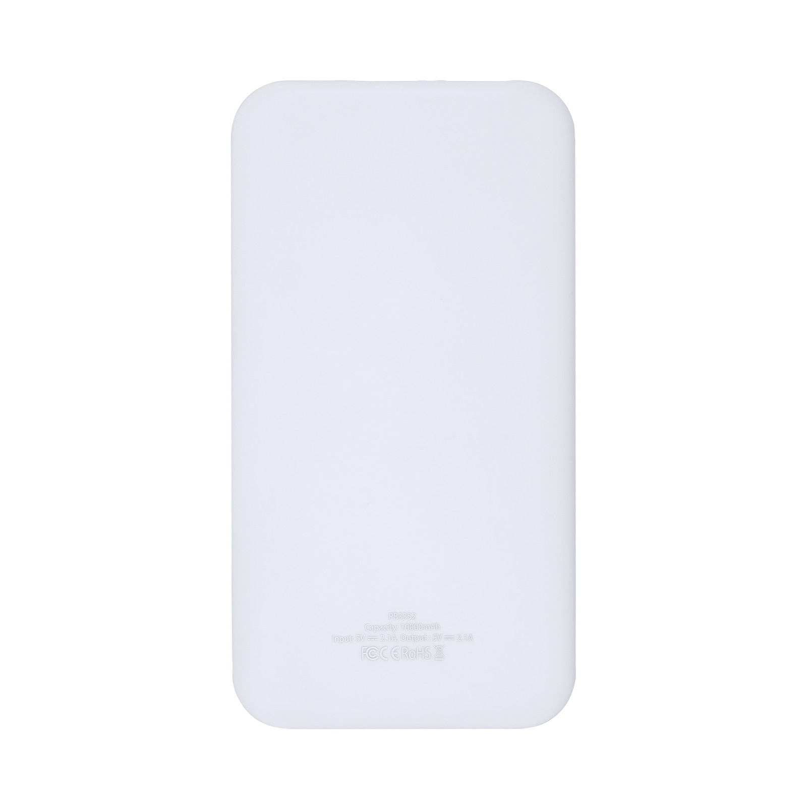 Batteria esterna da 10.000 mAh, in ABS bianco. Include un cavo Micro USB. Dimensioni: cm 14,4 x 1,4 x 7,7. Confezione in astuccio. Imballo: 40pz.