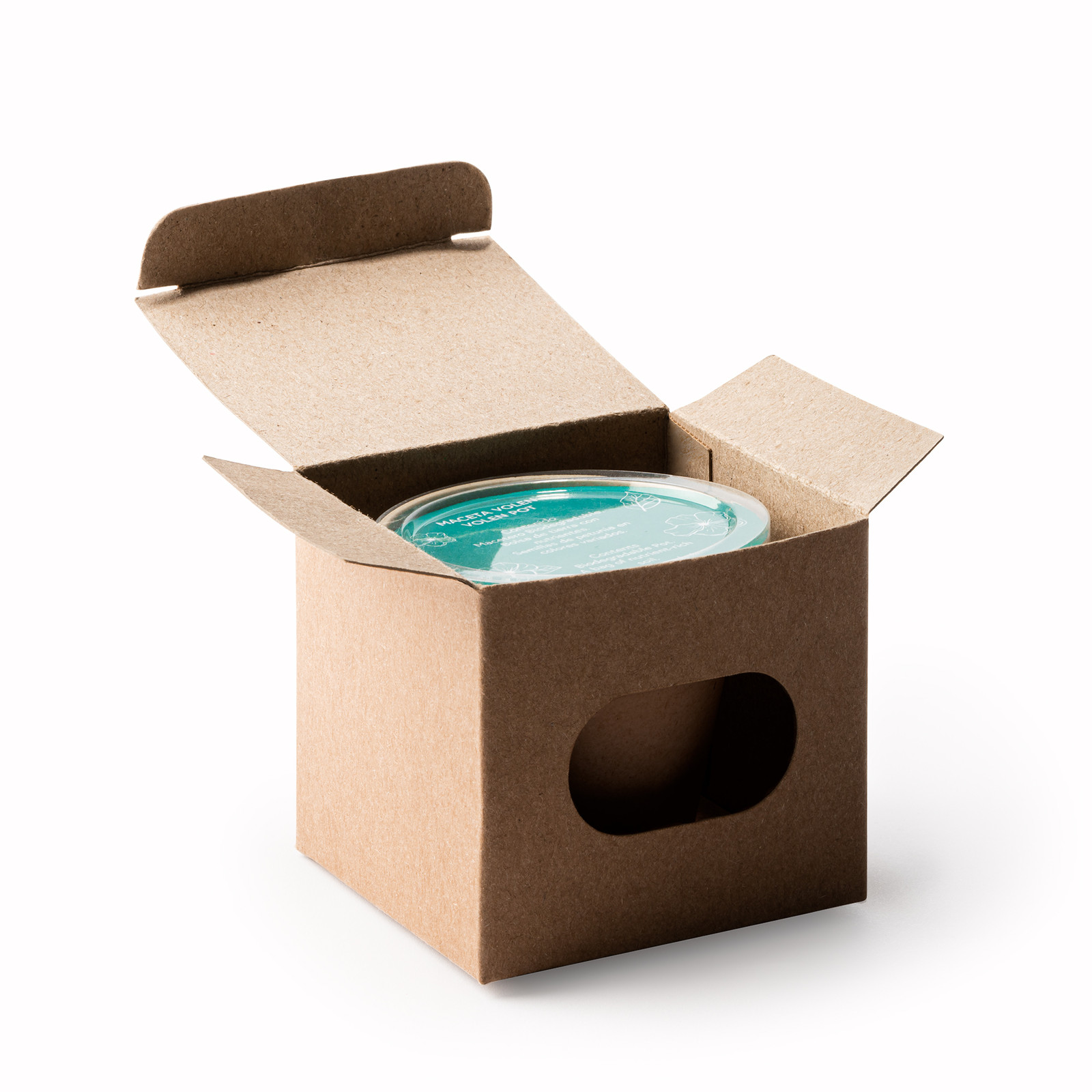 Vaso con semi di petunia e fioriera biodegrada bile. Include substrato. Dimensioni: cm 6x6,4. Imballo: 200pz.