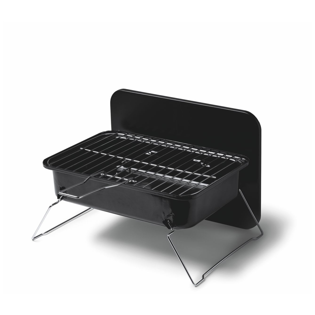 Barbecue a carbone portatile in acciaio inossidabile. Chiudibile con griglia staccabile. Confezione in scatola. Dimensioni: cm 36x8x25. Perfetta per ambienti professionali o come regalo di classe.