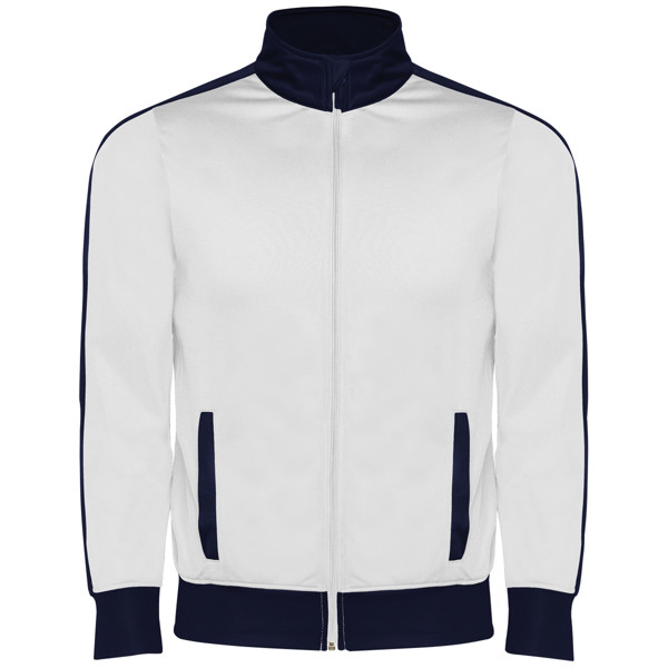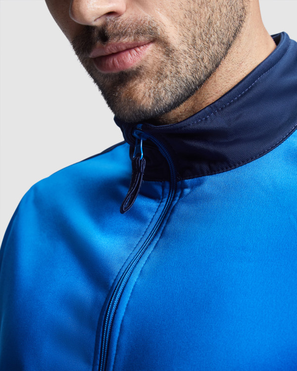 Tuta composta da giacca e pantaloni. 1.- Collo alto con protezione zip. 2.- Tasche frontali in contrasto colore. 3.- Polsini e vita in costina 1x1 in contrasto colore. 4.- Zip centrale con cuciture ricoperte . 5.- Pantaloni con elastico in vita e cordoncino regolabile con impuntura di sicurezza e due ampie tasche laterali . 6.- Interni in velluto molto confortevoli. 7.- Cerniere sulle caviglie dei pantaloni.