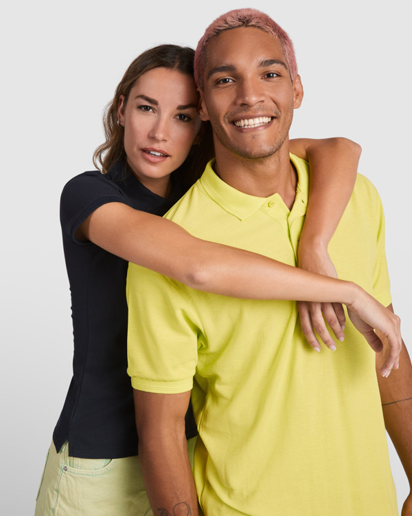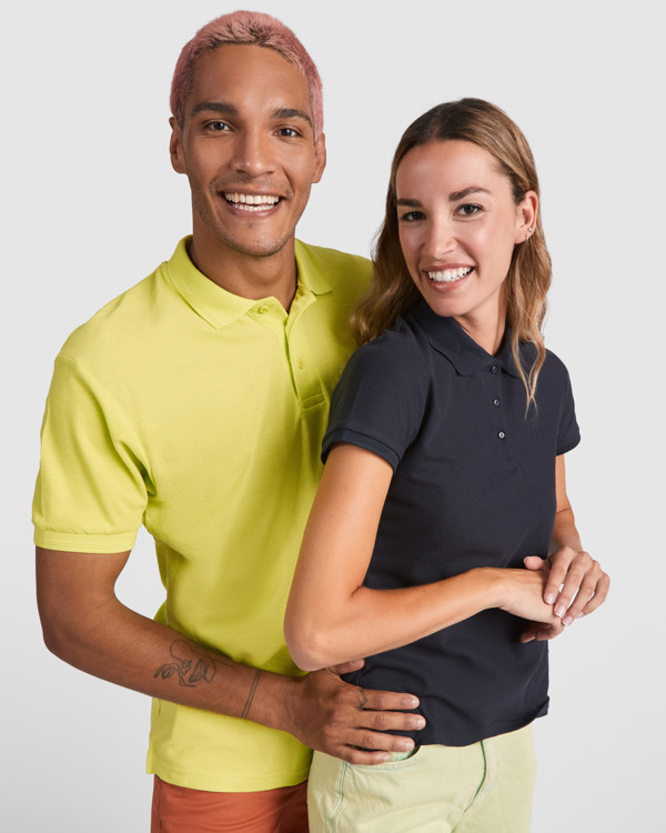 Polo manica corta, vestibilità slim. Collo e polsini a costine 1x1. 3 bottoni. Cuciture rinforzate sul colletto. Aperture laterali.