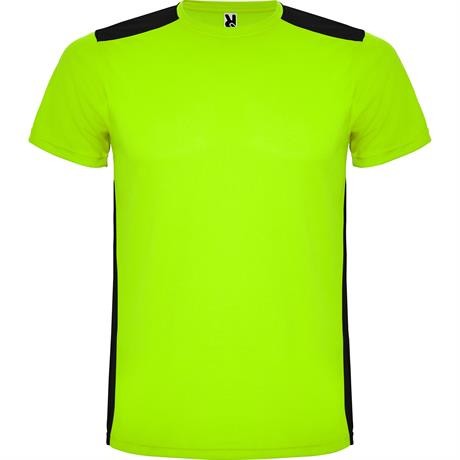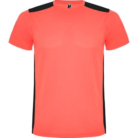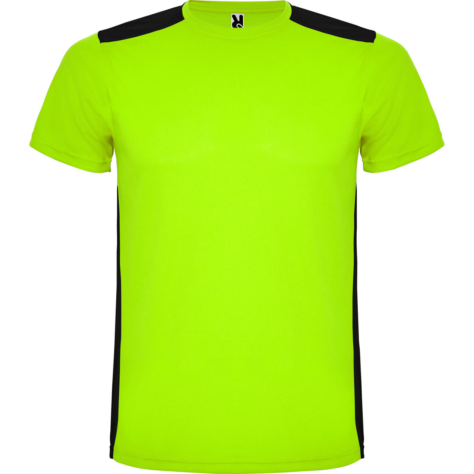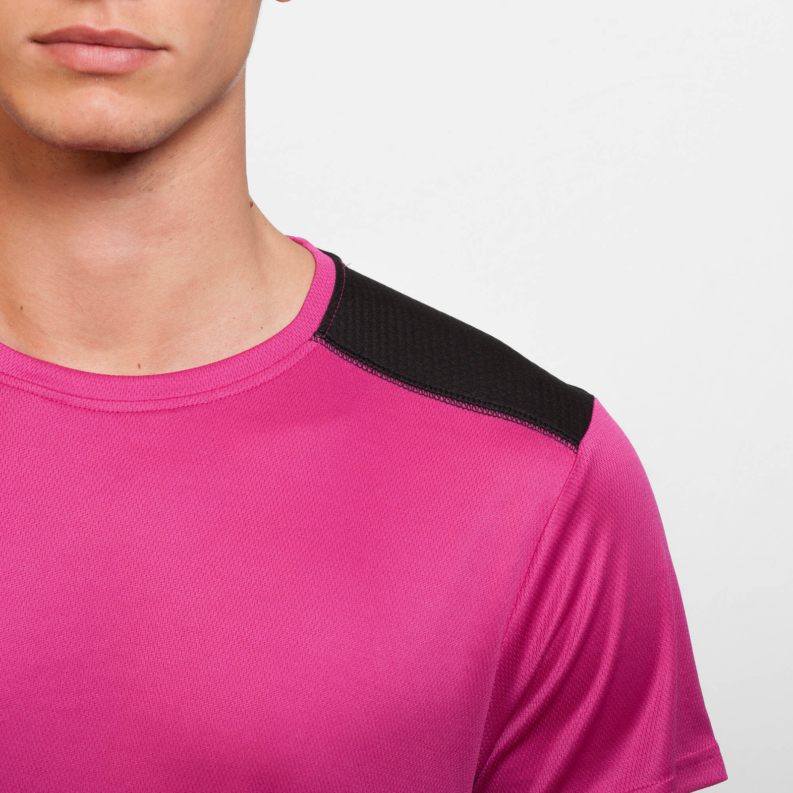 Maglietta tecnica maniche corte. 1.- Girocollo. 2.- Combinata nella schiena e spalle con due tessuti di poliestere. 3.- Tessuto principale frontale occhio di pernice e tessuto reticolare 3D traspirante sulla schiena. 4.- Tessuto preparato per l´assorbimento dell´umidità. 5.- Cuciture decorative ZigZag sulle spalle e sui laterali. 6.- Parte posteriore leggermente più lunga.
