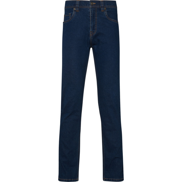 Jeans da uomo. · Vestibilità regolare e vita media. · Cintura in vita con 5 passanti.· Chiusura con cerniera metallica.· Due tasche anteriori e una tasca portamonete.· Due tasche posteriori.· Taglio semi aderente in tessuto elastico.