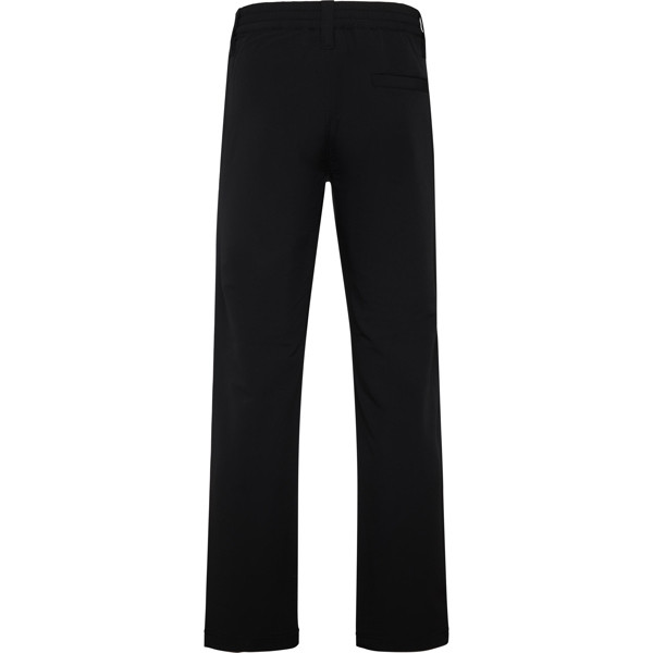 Pantaloni lunghi unisex in tessuto tecnico. · Vita elastica regolabile sul retro. · Passanti per la cintura. · Due tasche laterali dal taglio classico. · Due tasche laterali nelle cuciture con cerniera a scomparsa. · Tasca posteriore con bottone a pressione. · Pieghe sulle ginocchia. · Doppia cucitura all'interno della gamba, del cavallo, orlo e carré posteriore. · Regolatori in PVC e fasce elastiche sugli orli.