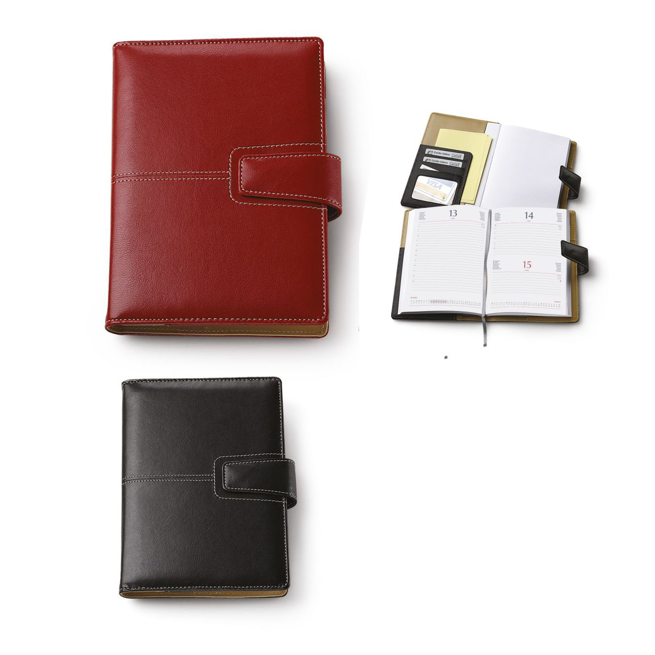 Agenda in similpelle. 320 pag Vari scomparti porta carte di credito, porta documenti, vano porta penna. Chiusura calamitata. Interno mobile giornaliero (15x21). Stampa 2 colori. Multilingue. Sabato e domenica abbinati, rubrica telefonica, carta bianca. Confezione in astuccio. Colori: nero, bordeaux. Dimensioni cm 17x23 Imballo: 30xcolore
