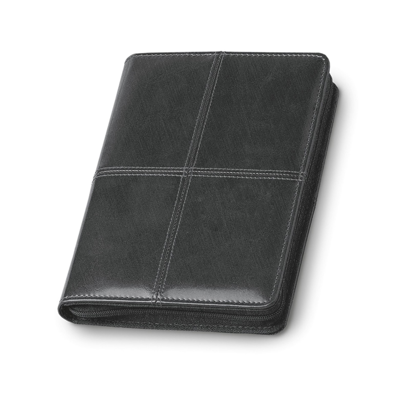 Agenda borsello in similpelle. 320 pag. Vari scomparti porta carte credito, porta documenti. Vano porta penna. Interno mobile giornaliero (15x21). Stampa 2 colori. Multilingue. Sabato e domenica ab-binati, rubrica telefonica, carta bianca. Colore unico. Confezione in astuccio. Dimensioni cm. 17x22 Imballo: 20