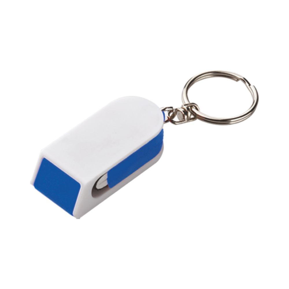 Portachiavi supporto cellulare-pulisci schermo. Materiale: plastica. Colori: rosso, nero, verde, blu. Confezione in polybag. Dimensioni cm.4,5x1,5 Imballo: 1000xcolore