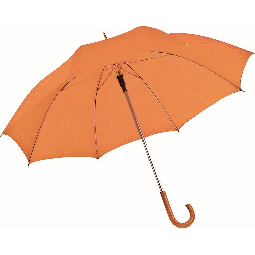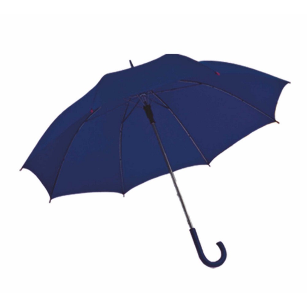 Ombrello scatto automatico. Poliestere 190T. Manico curvo e puntale in plastica. Colori: royal, bianco, giallo, rosso, verde, arancio, nero, blu. Dimensioni h cm 85 Ǿ cm 105 Imballo: 60xcolore