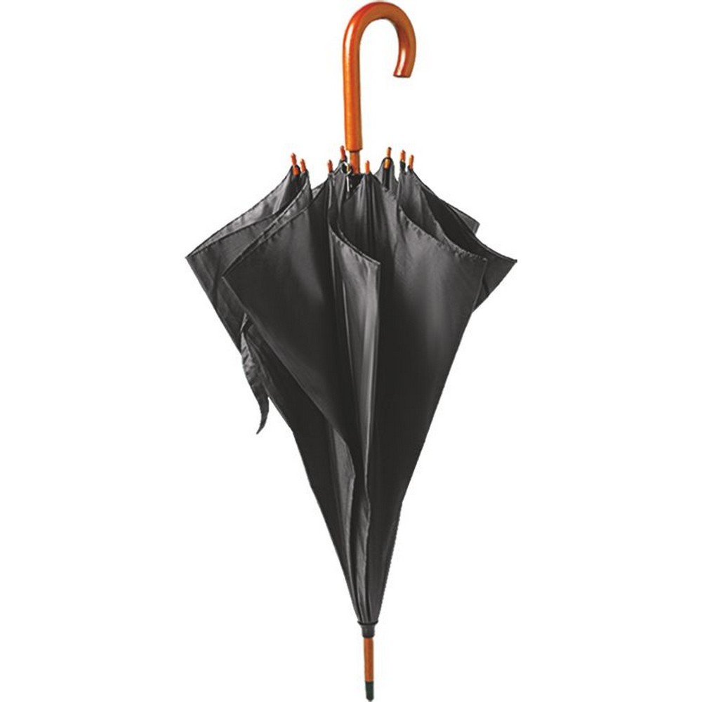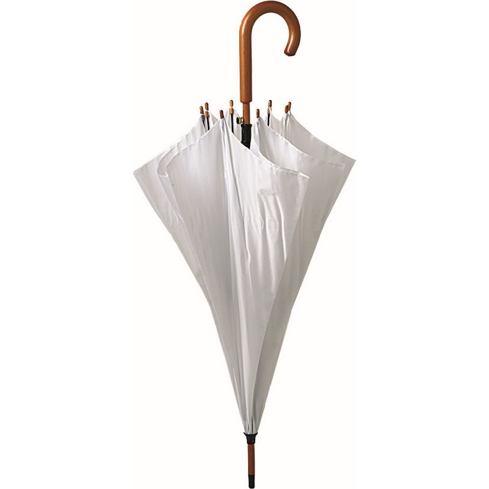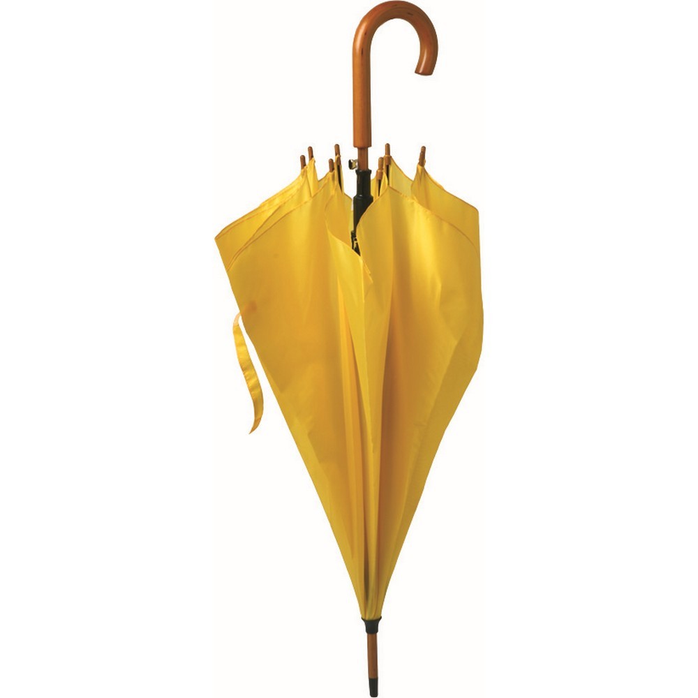 Ombrello scatto automatico. Poliestere 190T.Manico curvo e puntale in legno. Colori: giallo, blu, verde scuro, bianco, bordeaux, arancio. Dimensioni Ǿ cm.105 h. cm.89 Imballo: 60xcolore