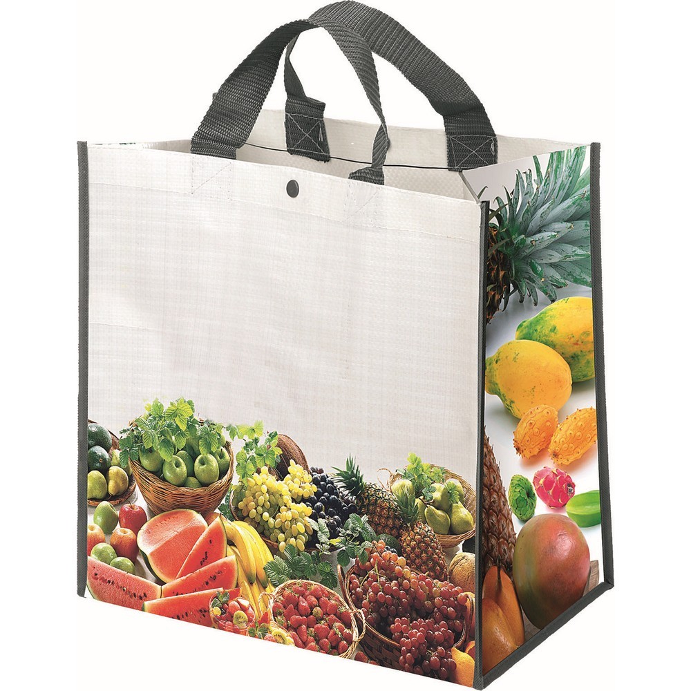 Borsa shopping PP “Frutta”. Doppio manico. Chiusura con bottoncino. Colore unico. Dimensioni cm.35x35x22 Imballo: 100