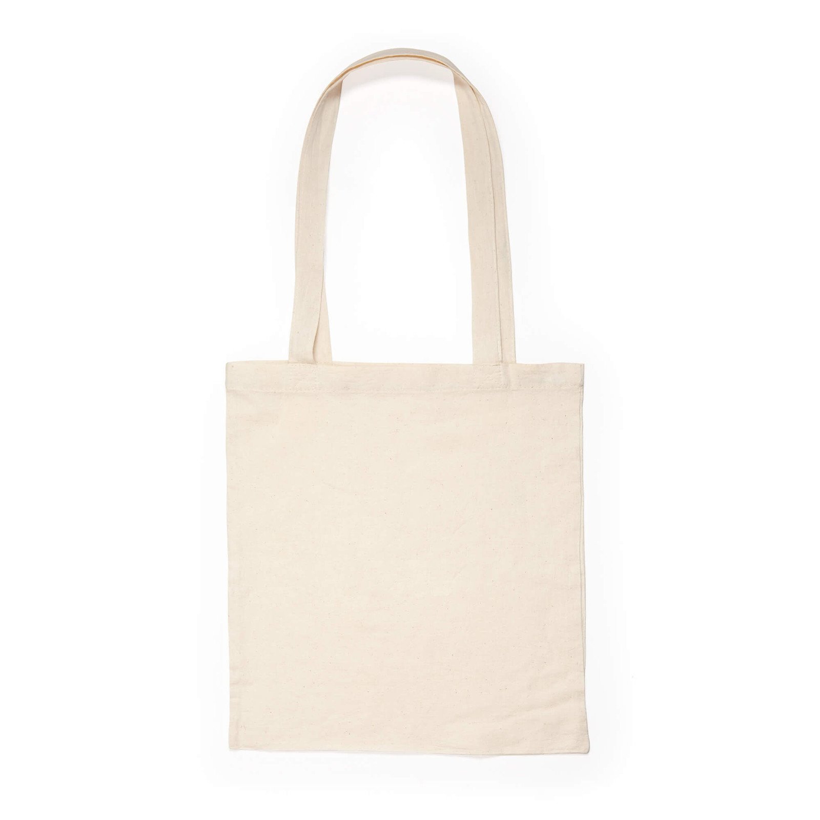 Borsa della spesa 100% di cotone 105gr/m2 cucita. Con pratici manici lunghi rinforzati di 70cm. Dimensione: 37x41cm