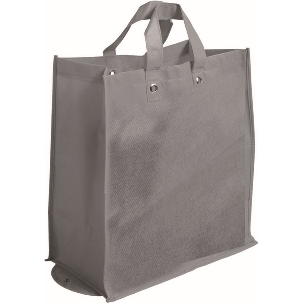 Borsa shopping in tnt. Cucita. Richiudibile su se stessa (cm. 20x20) con bottone. Manici (cm.3x34). Colori: fucsia, rosso, arancio, verde lime, verde, rosa, royal, blu, marrone, grigio, bianco, nero. Dimensioni cm.34x40x20 Imballo: 100xcolore