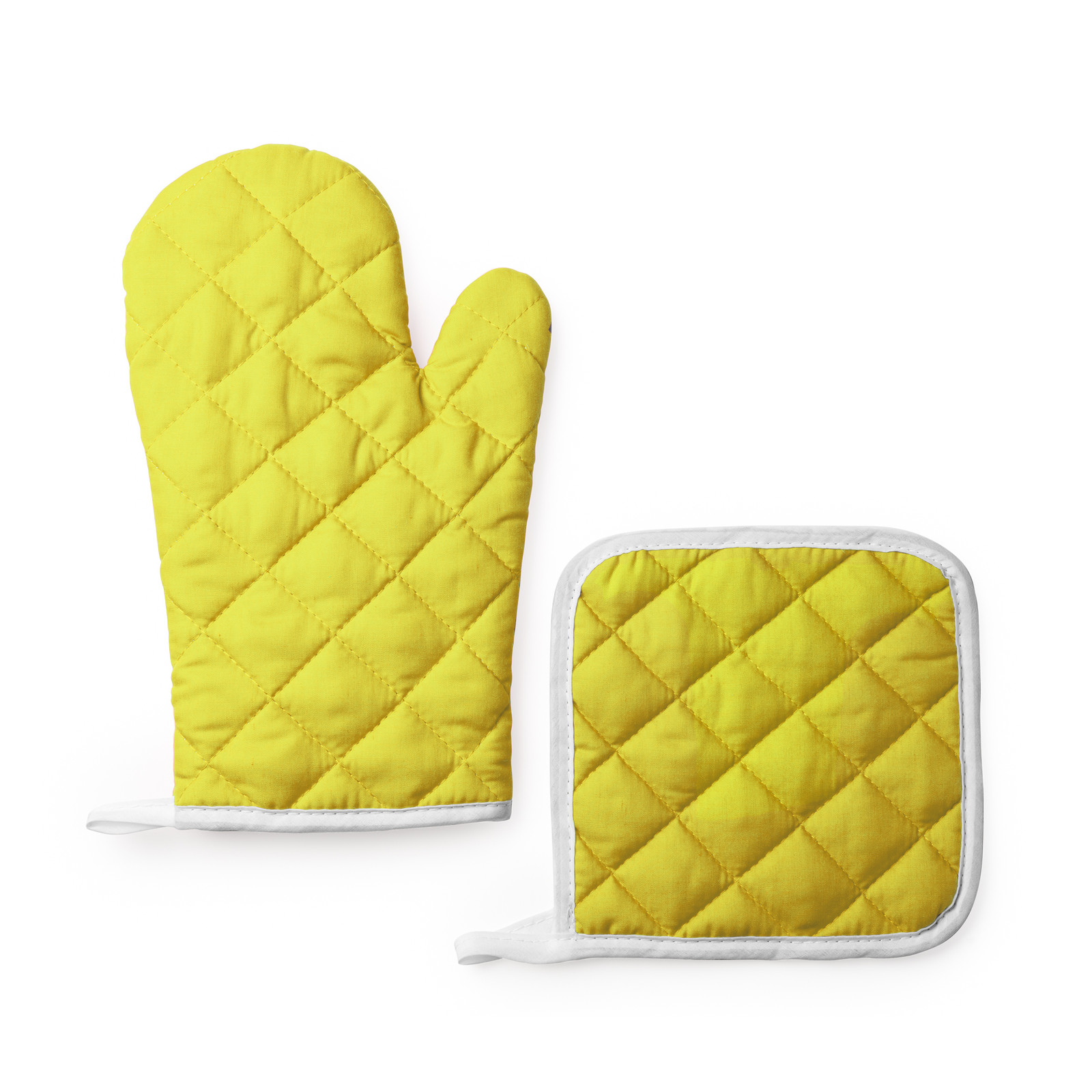 Guanto più presina in cotone e poliestere trapuntato. Dimensioni: cm 30,5x19. Imballo: 100pz.