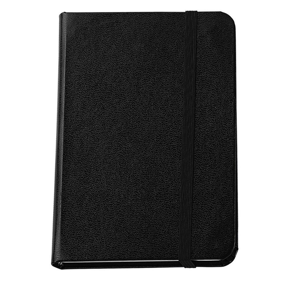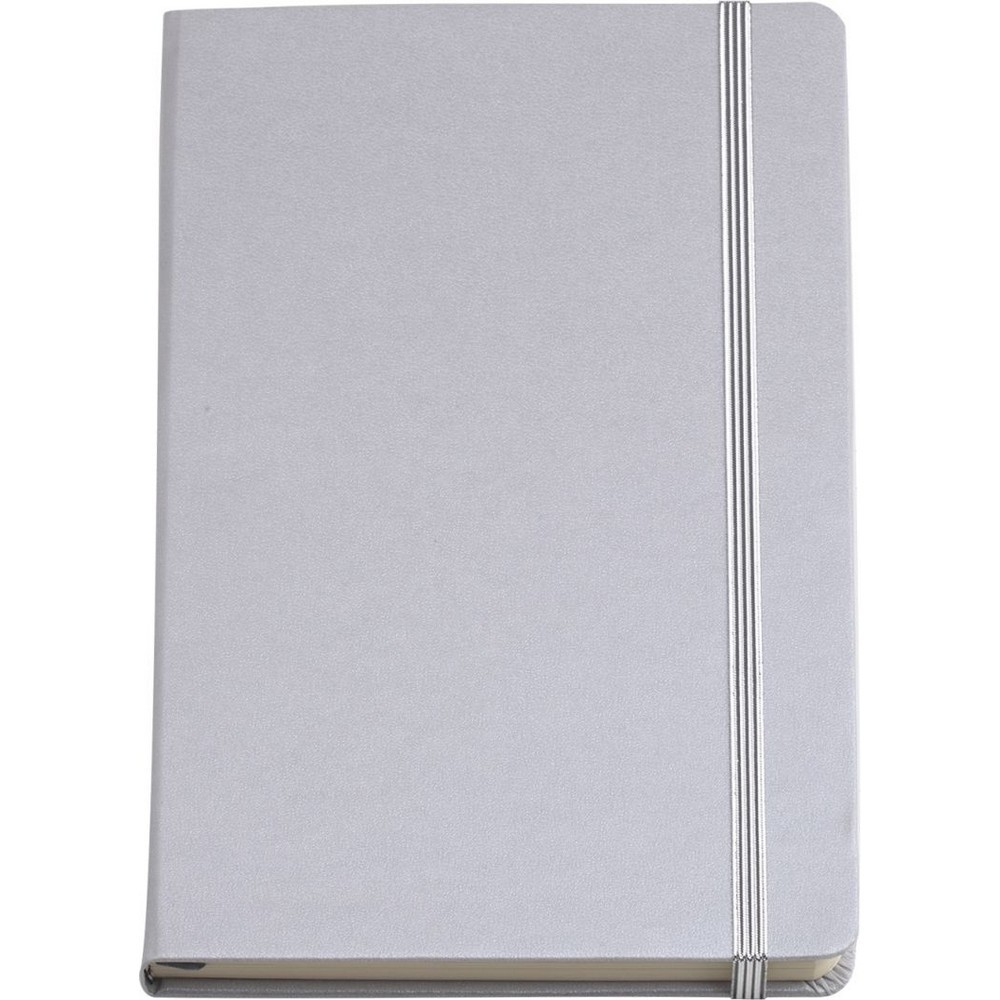 Blocco notes con elastico. Pvc. Interno composto da 100 fogli /240 pagine. gr.70 carta bianca. Confezione in polybag. Colori: verde, bianco, nero, rosso, blu, royal, arancio, oro, silver. . Dimensioni cm.13,5x20,5 Imballo: 50xcolore