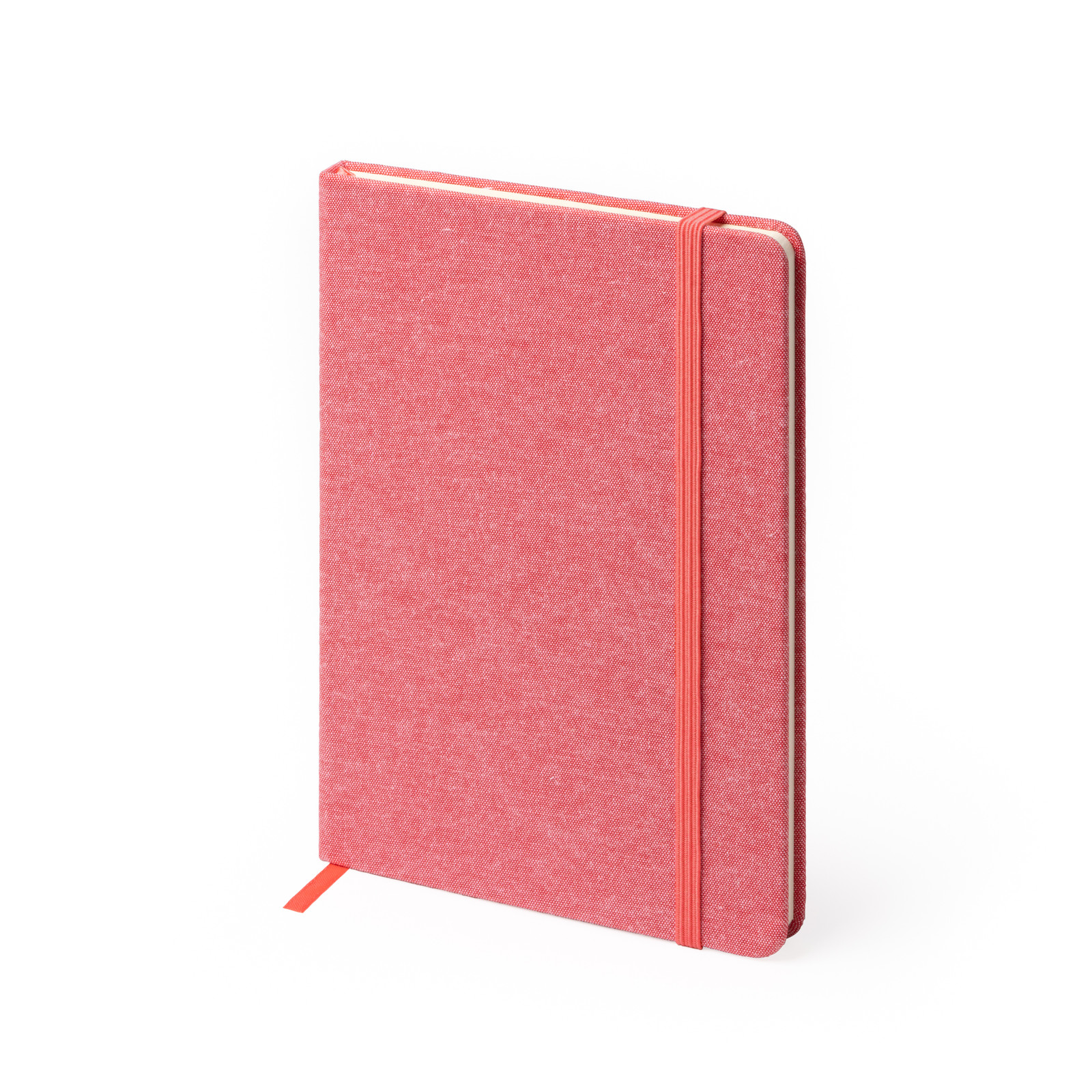 Quaderno A5 con copertina in cotone. Segnapagina ed elastico. 100 fogli bianchi. Dimensioni: cm 14x21x1,5