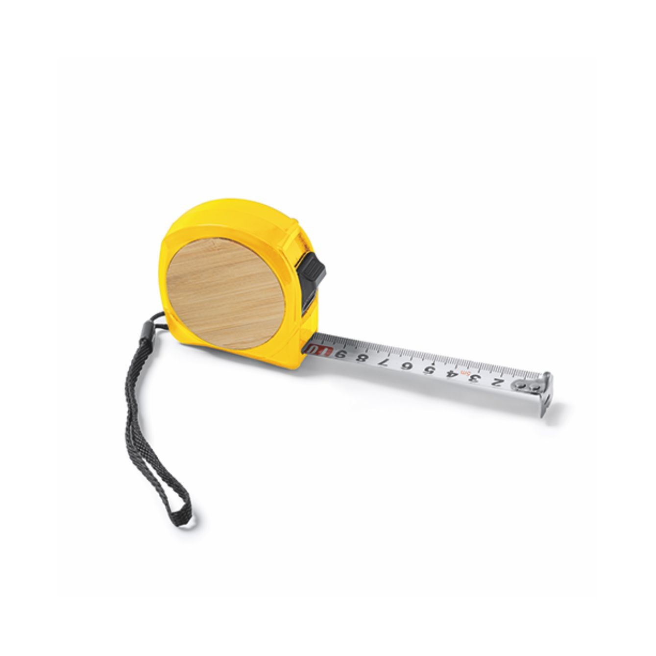 Il flessometro Jago è uno strumento robusto e affidabile per misurazioni precise. Dotato di un meccanismo di bloccaggio sicuro e un gancio a nastro metallico resistente. Le clip in metallo e i dettagli in bamboo aggiungono un tocco di eleganza. Le dimensi