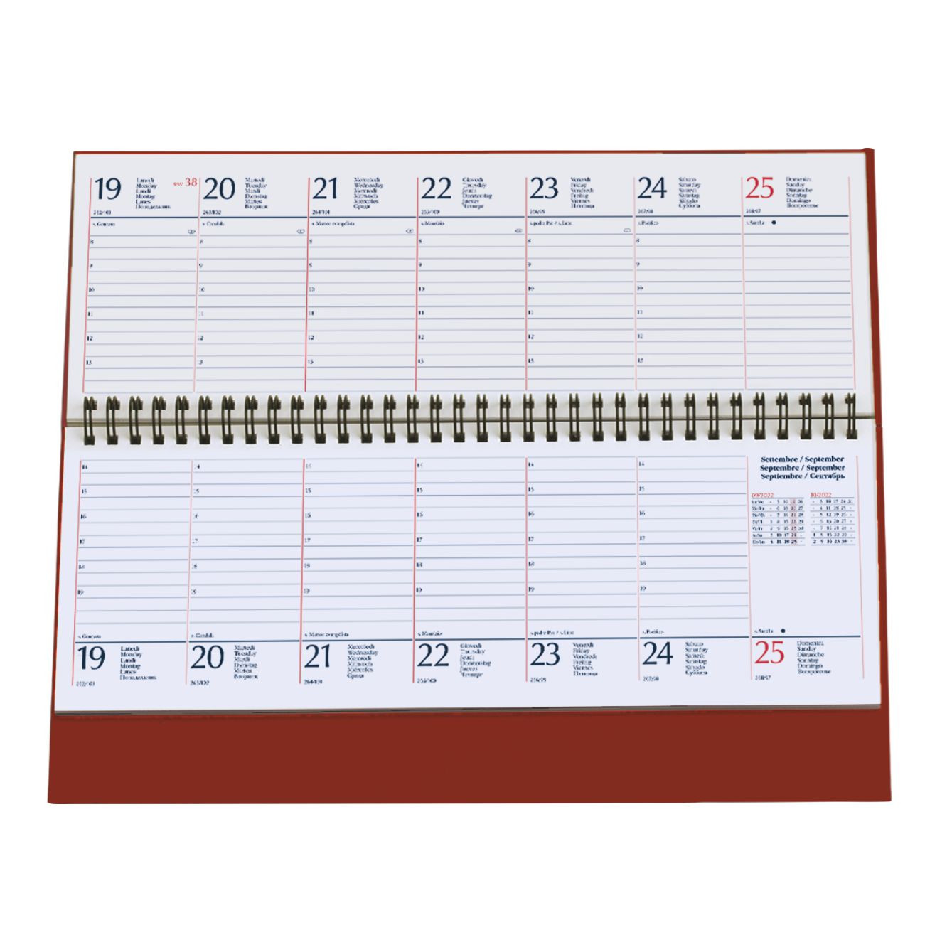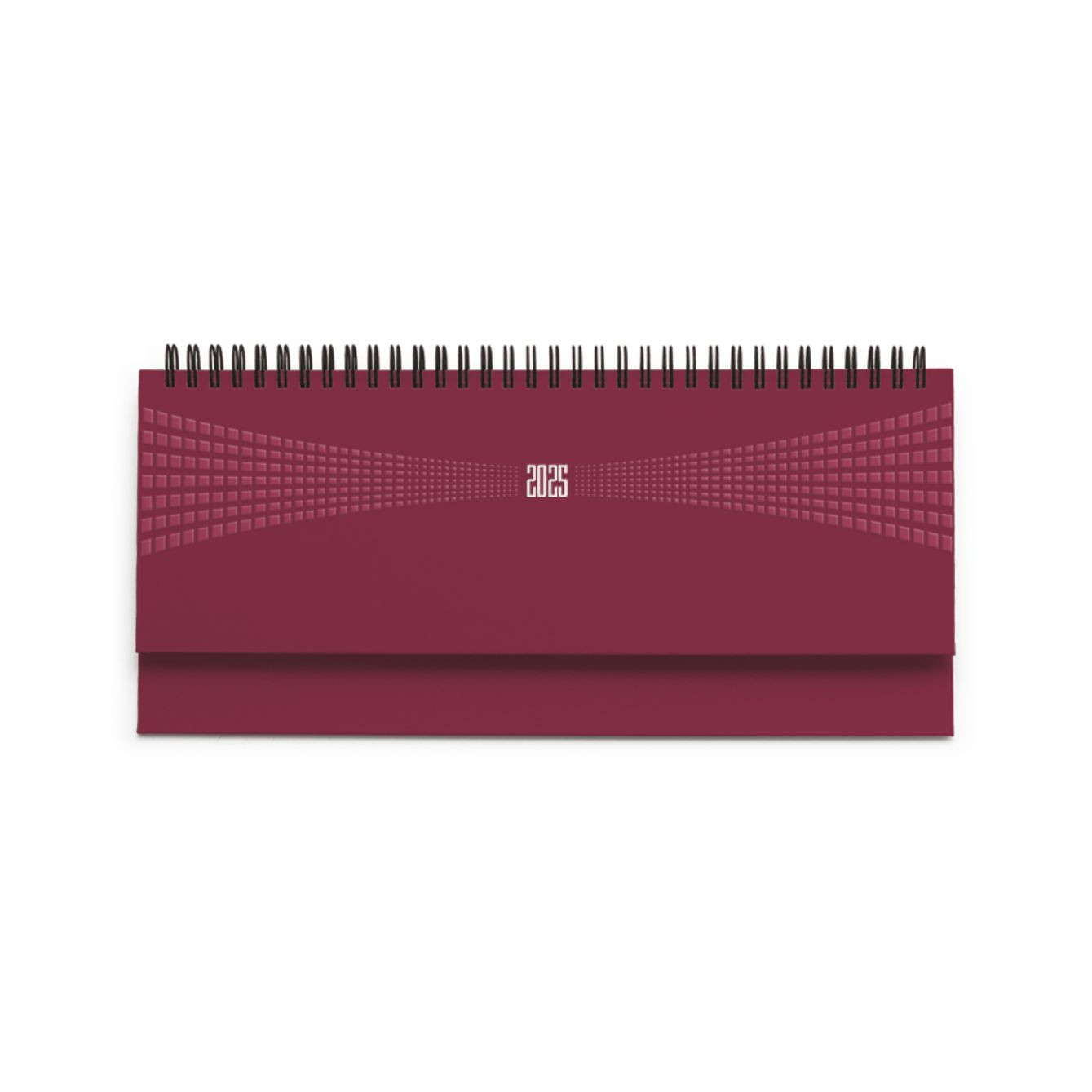Planning spiralato in matra. 128 pagine. Carta usomano bianca 70 gr. Interno stampa 2 colori, datato. Colori: blu, verde, bordeaux, nero, rosso, grigio. Dimensioni cm 30x15 Imballo: 20xcolore