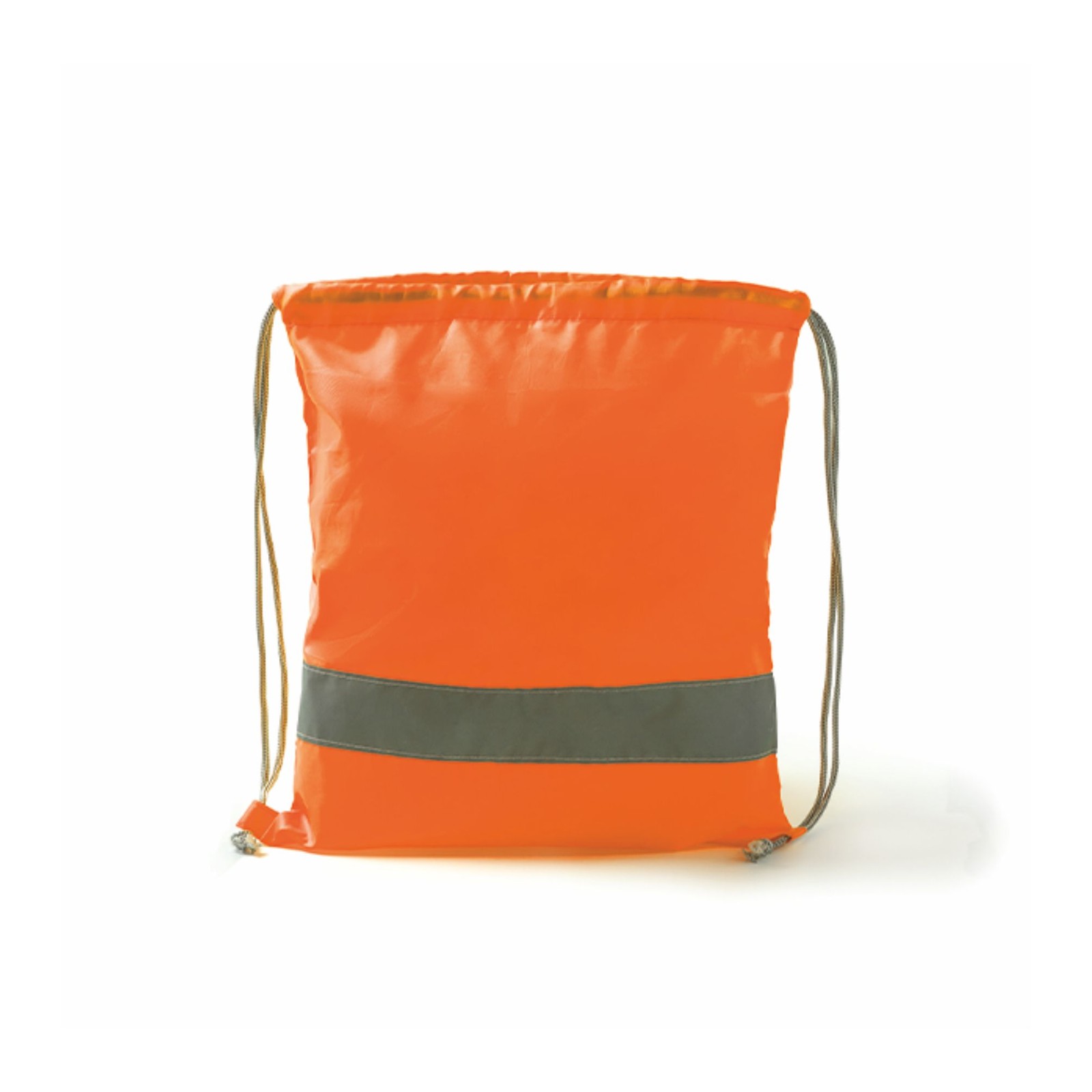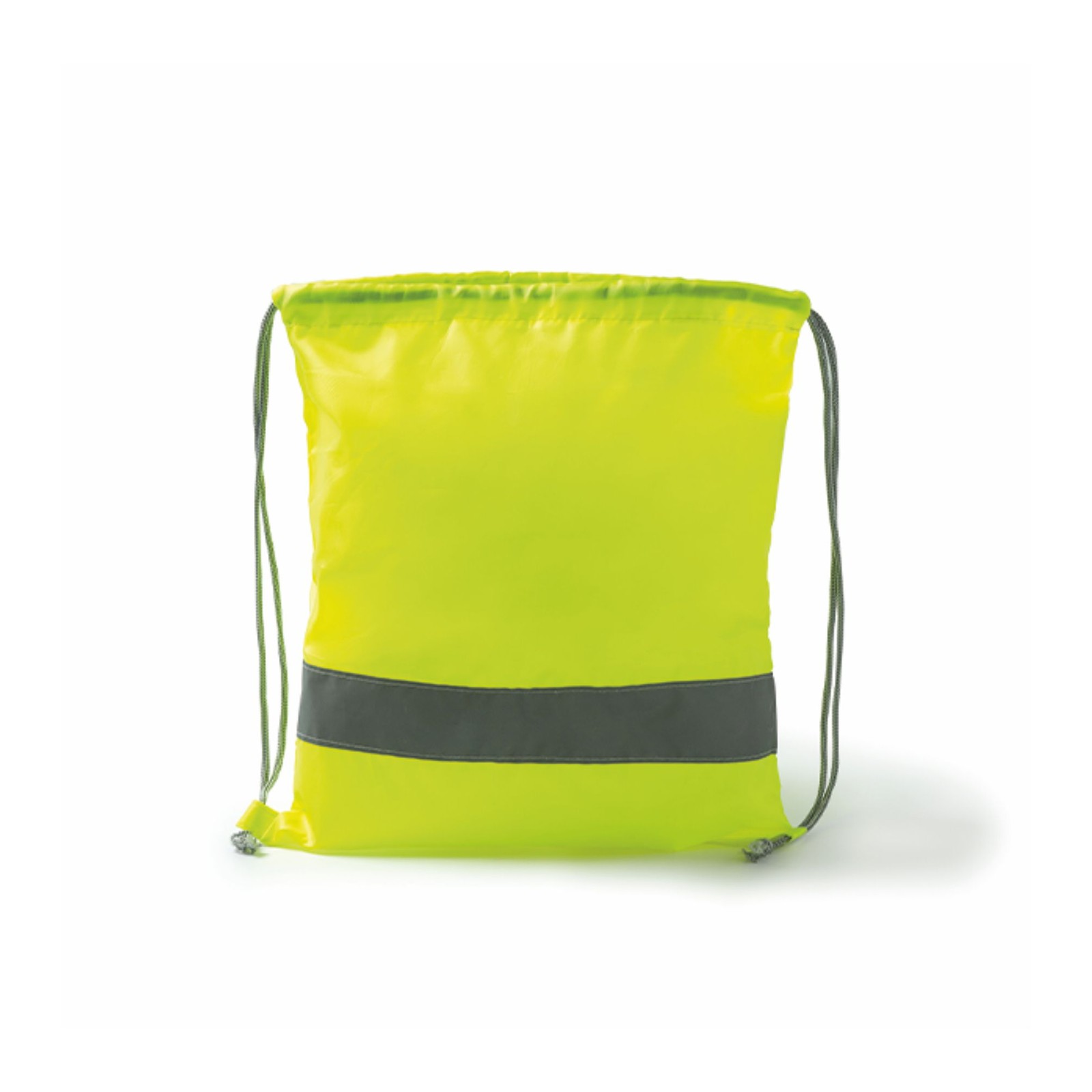 Sacca con coulisse e striscia ad alta visibilità in poliestere 210D. Dimensioni: cm 34,5x41. Imballo: 300pz.