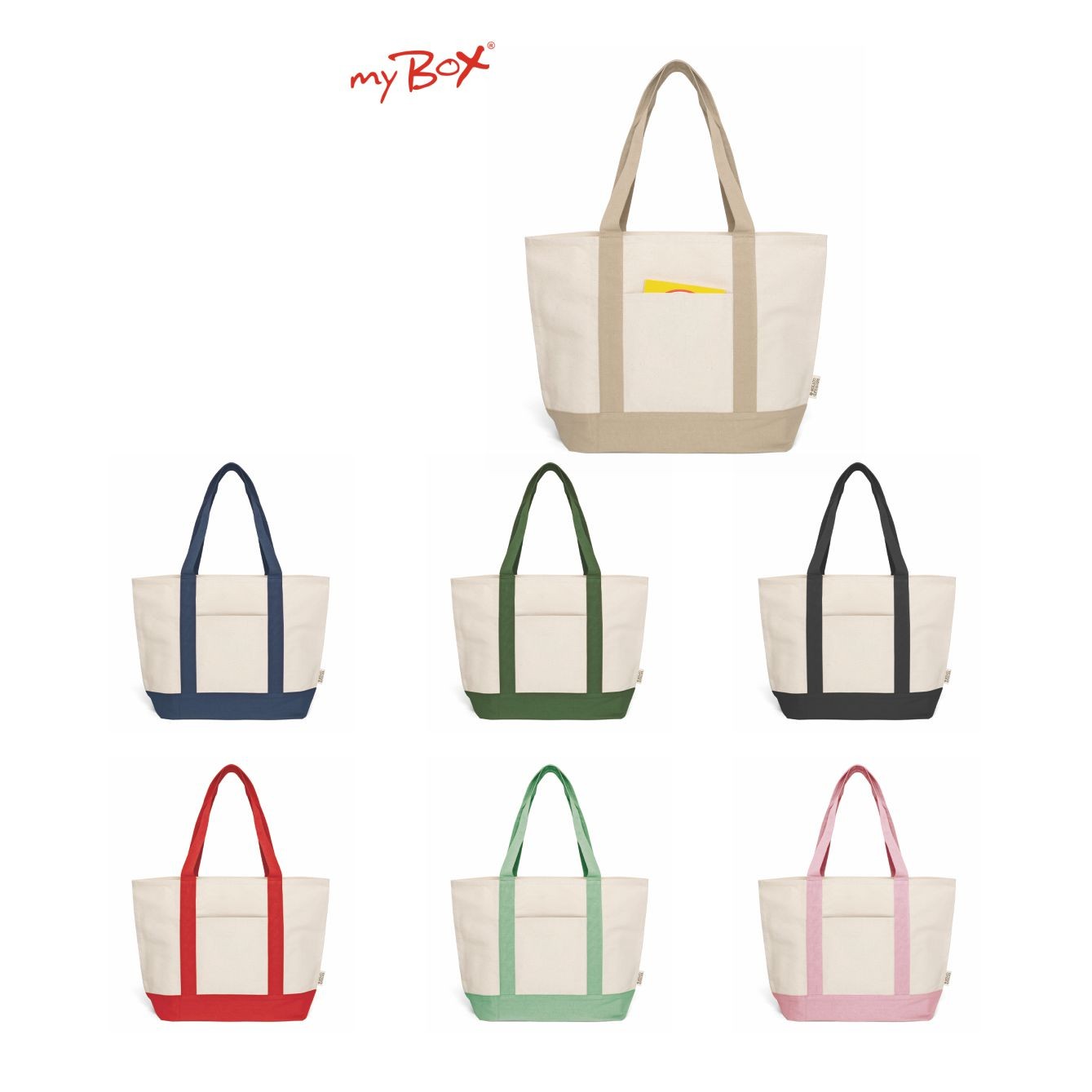 Borsa mare in cotone canvas 310 g/m² con manici rinforzati in corda cm 4x61. Dimensioni: cm 40x40x15. Imballo: 100pz.