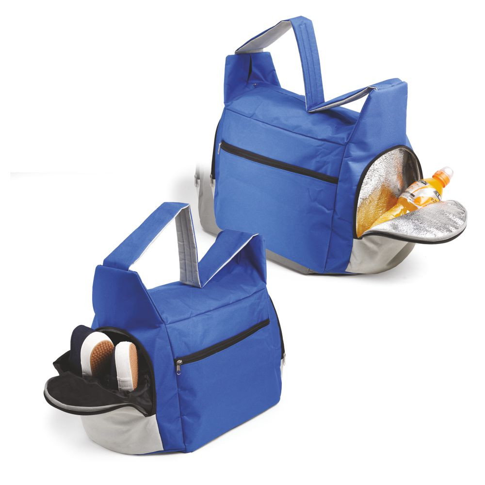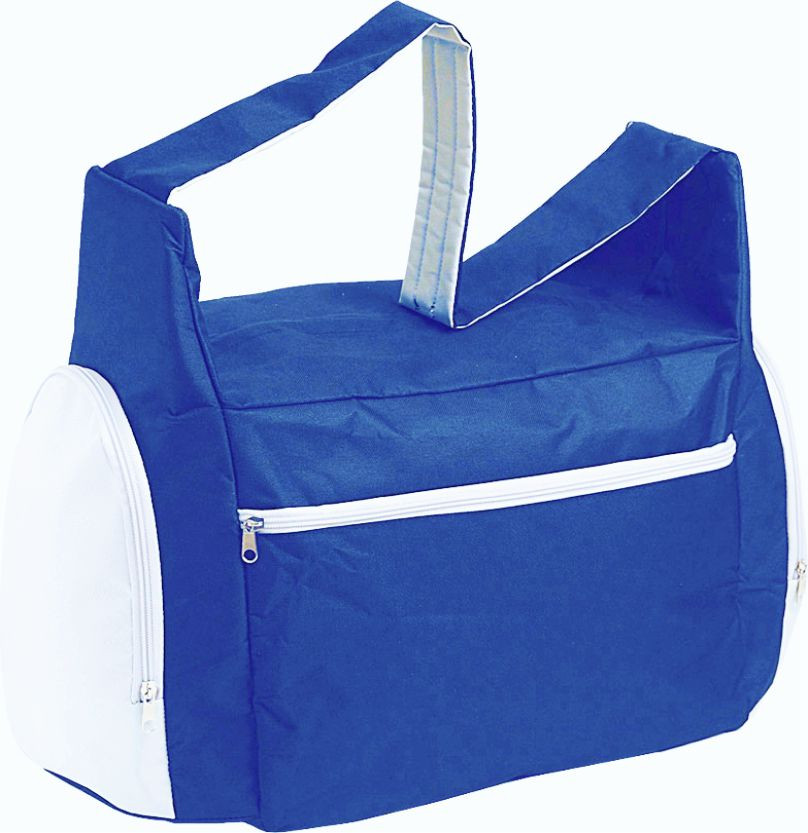 Borsa palestra in poliestere 600D. Tascone anteriore con zip. Doppie tasche laterali chiuse da zip: uso termico, uso porta scarpe. Manico a tracolla salva spalle. Interno plastificato. Colori: royal, rosso, nero, blu, grigio, fuxia, verde lime, arancio. Confezione in polybag. . Dimensioni cm.53x28x30 Imballo: 20xcolore