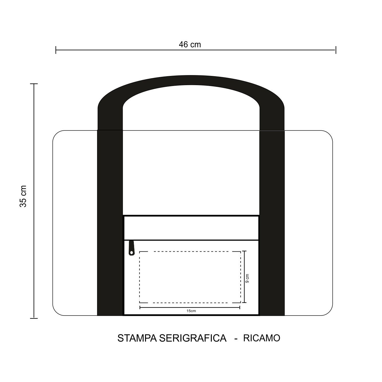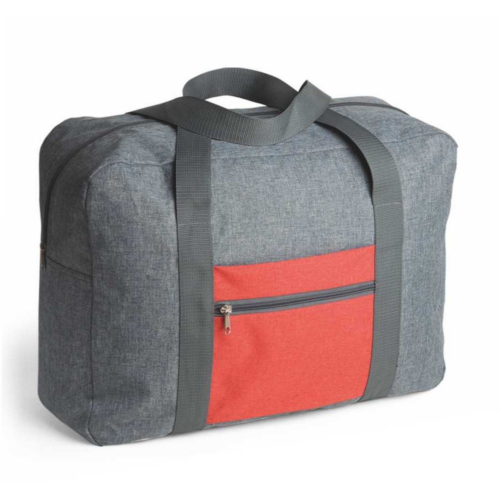Borsa da viaggio in poliestere 300D. Tasca anteriore con zip. Richiudibile su se stessa. Doppio manico. Colori: sky, blu, rosso, verde. Dimensioni cm.46x35x19. Imballo: 40xcolore