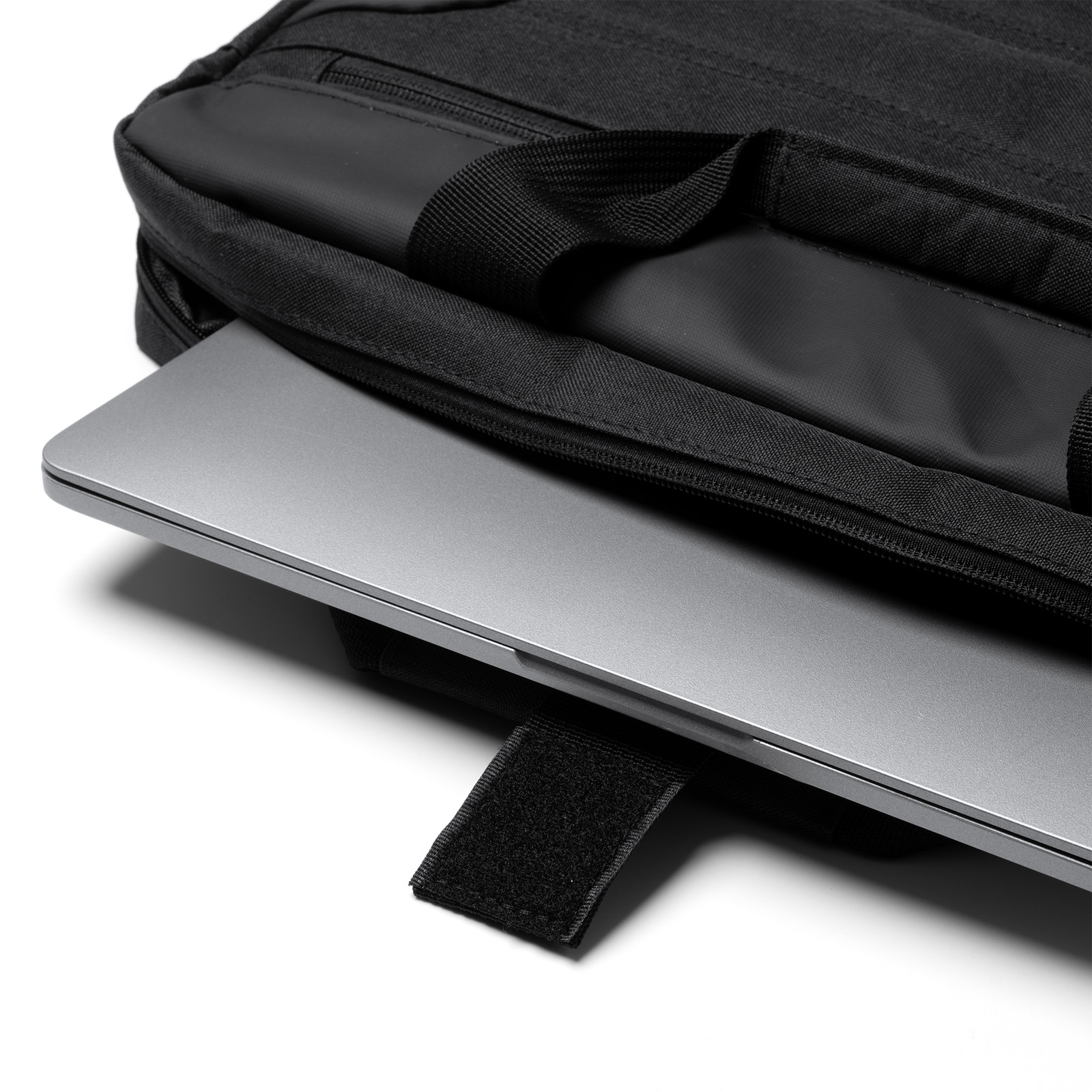 Portadocumenti imbottito per laptop in pelle PU. È dotato di due spaziosi scomparti, maniglie per il trasporto, tracolla regolabile. Dimensioni: cm 40x29,5x5,5